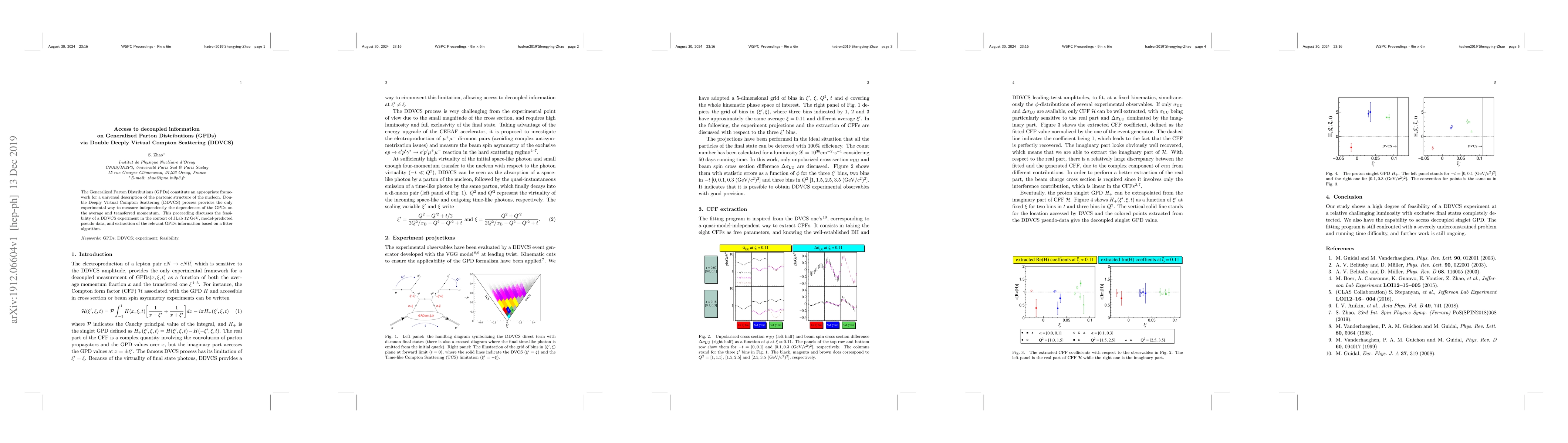 The Generalized Parton Distributions (GPDs) constitute an appropriate framework for a universal description of the partonic structure of the nucleon. Double Deeply Virtual Compton Scattering (DDVCS) process provides the only experimental way to measure independently the dependences of the GPDs on the average and transferred momentum. This proceeding discusses the feasibility of a DDVCS experiment in the context of JLab 12 GeV, model-predicted pseudo-data, and extraction of the relevant GPDs information based on a fitter algorithm.