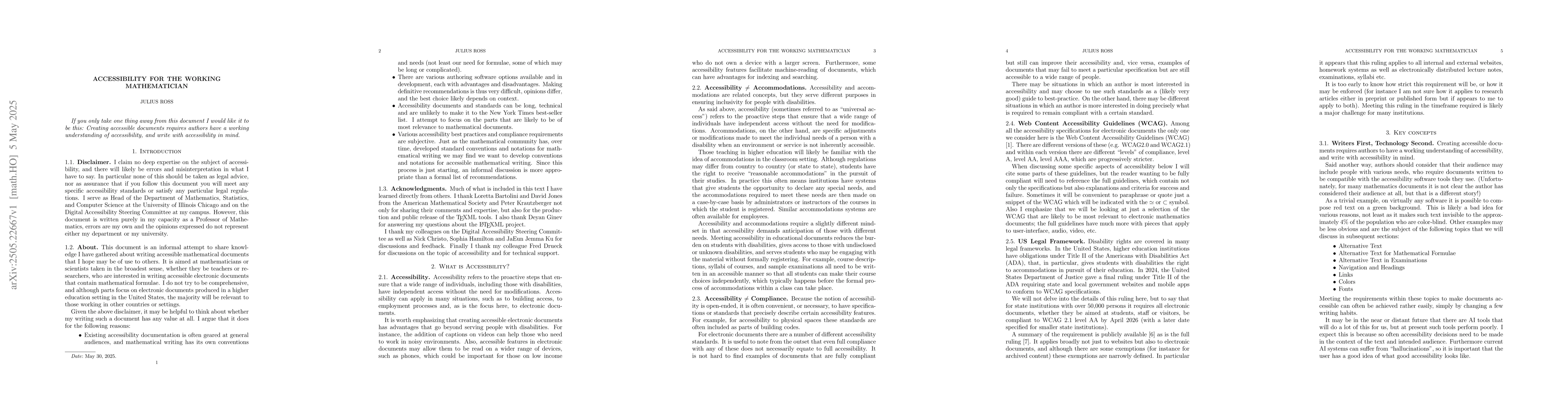 While the importance of accessibility is recognized, this paper uniquely targets working mathematicians, emphasizing their role in document accessibility.