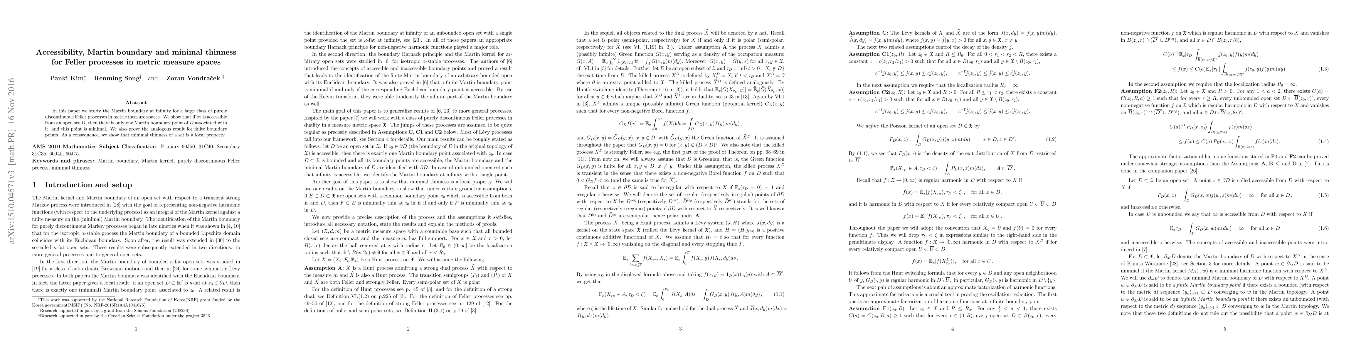 In this paper we study the Martin boundary at infinity for a large class of purely discontinuous Feller processes on metric measure spaces. We show that if $\infty$ is accessible from an open set $D$, then there is only one Martin boundary point of $D$ associated with it, and this point is minimal. We also prove the analogous result for finite boundary points. As a consequence, we show that minimal thinness of a set is a local property.