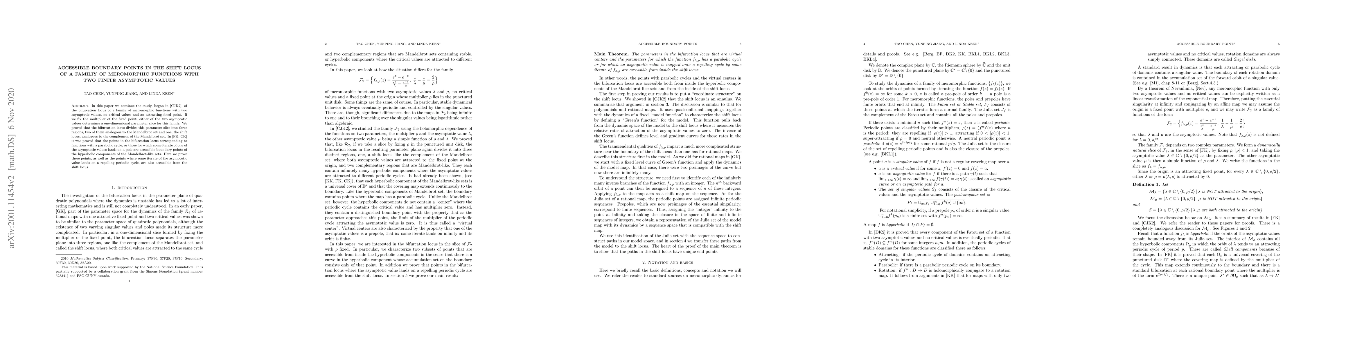 In this paper we continue the study, began in \cite{CJK2}, of the bifurcation locus of a family of meromorphic functions with two asymptotic values, no critical values and an attracting fixed point. If we fix the multiplier of the fixed point, either of the two asymptotic values determines a one-dimensional parameter slice for this family. We proved that the bifurcation locus divides this parameter slice into three regions, two of them analogous to the Mandelbrot set and one, the shift locus, analogous to the complement of the Mandelbrot set. In \cite{FK, CK} it was proved that the points in the bifurcation locus corresponding to functions with a parabolic cycle, or those for which some iterate of one of the asymptotic values lands on a pole are accessible boundary points of the hyperbolic components of the Mandelbrot-like sets. Here we prove these points, as well as the points where some iterate of the asymptotic value lands on a repelling periodic cycle, are also accessible from the shift locus.