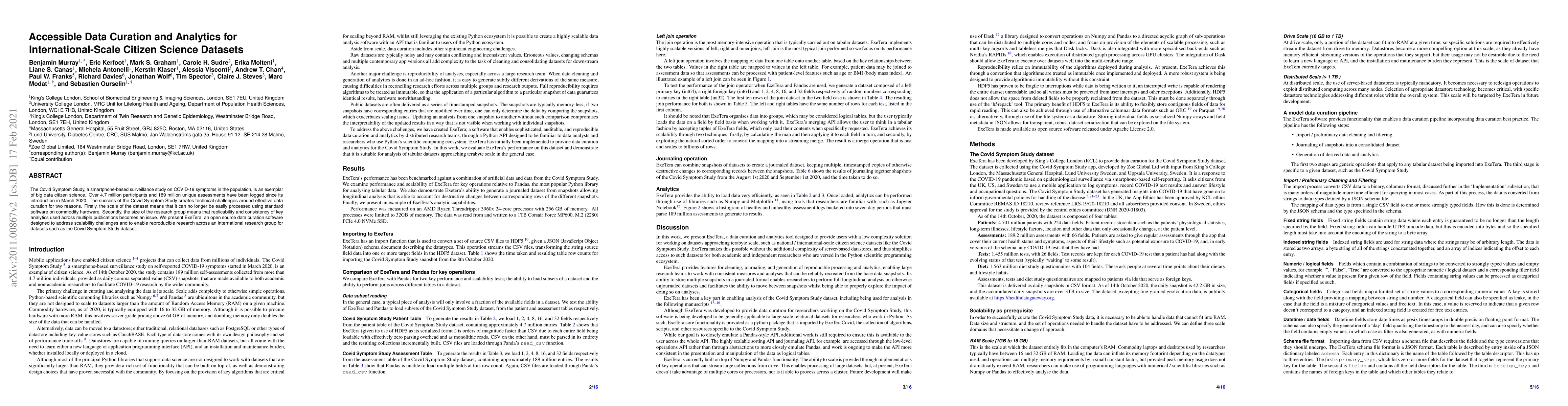 The Covid Symptom Study, a smartphone-based surveillance study on COVID-19 symptoms in the population, is an exemplar of big data citizen science. Over 4.7 million participants and 189 million unique assessments have been logged since its introduction in March 2020. The success of the Covid Symptom Study creates technical challenges around effective data curation for two reasons. Firstly, the scale of the dataset means that it can no longer be easily processed using standard software on commodity hardware. Secondly, the size of the research group means that replicability and consistency of key analytics used across multiple publications becomes an issue. We present ExeTera, an open source data curation software designed to address scalability challenges and to enable reproducible research across an international research group for datasets such as the Covid Symptom Study dataset.