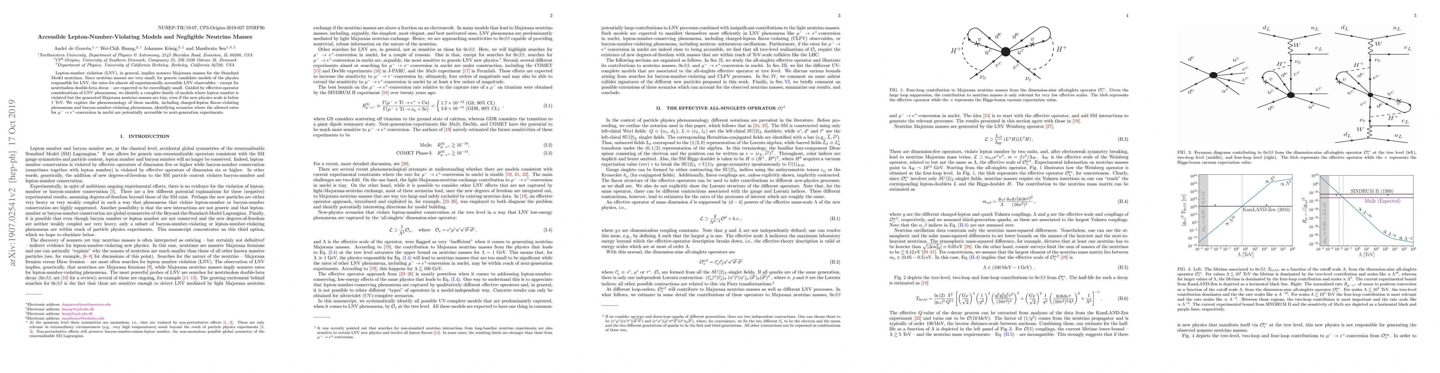Lepton-number violation (LNV), in general, implies nonzero Majorana masses for the Standard Model neutrinos. Since neutrino masses are very small, for generic candidate models of the physics responsible for LNV, the rates for almost all experimentally accessible LNV observables -- except for neutrinoless double-beta decay -- are expected to be exceedingly small. Guided by effective-operator considerations of LNV phenomena, we identify a complete family of models where lepton number is violated but the generated Majorana neutrino masses are tiny, even if the new-physics scale is below 1 TeV. We explore the phenomenology of these models, including charged-lepton flavor-violating phenomena and baryon-number-violating phenomena, identifying scenarios where the allowed rates for $\mu^-\to e^+$-conversion in nuclei are potentially accessible to next-generation experiments.