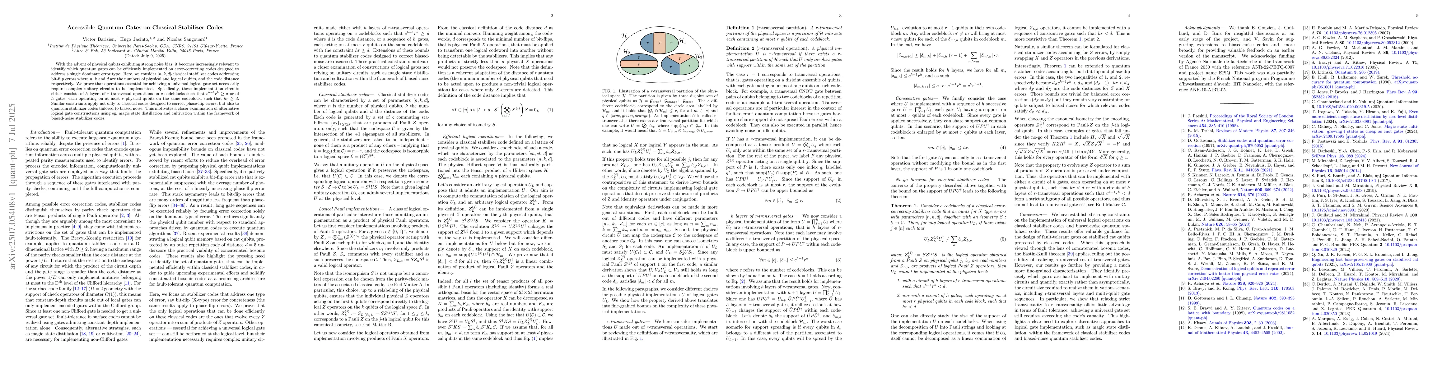 With the advent of physical qubits exhibiting strong noise bias, it becomes increasingly relevant to identify which quantum gates can be efficiently implemented on error-correcting codes designed to address a single dominant error type. Here, we consider $[n,k,d]$-classical stabilizer codes addressing bit-flip errors where $n$, $k$ and $d$ are the numbers of physical and logical qubits, and the code distance respectively. We prove that operations essential for achieving a universal logical gate set necessarily require complex unitary circuits to be implemented. Specifically, these implementation circuits either consists of $h$ layers of $r$-transversal operations on $c$ codeblocks such that $c^{h-1}r^h \geq d$ or of $h$ gates, each operating on at most $r$ physical qubits on the same codeblock, such that $hr\geq d$. Similar constraints apply not only to classical codes designed to correct phase-flip errors, but also to quantum stabilizer codes tailored to biased noise. This motivates a closer examination of alternative logical gate constructions using eg.~magic state distillation and cultivation within the framework of biased-noise stabilizer codes.