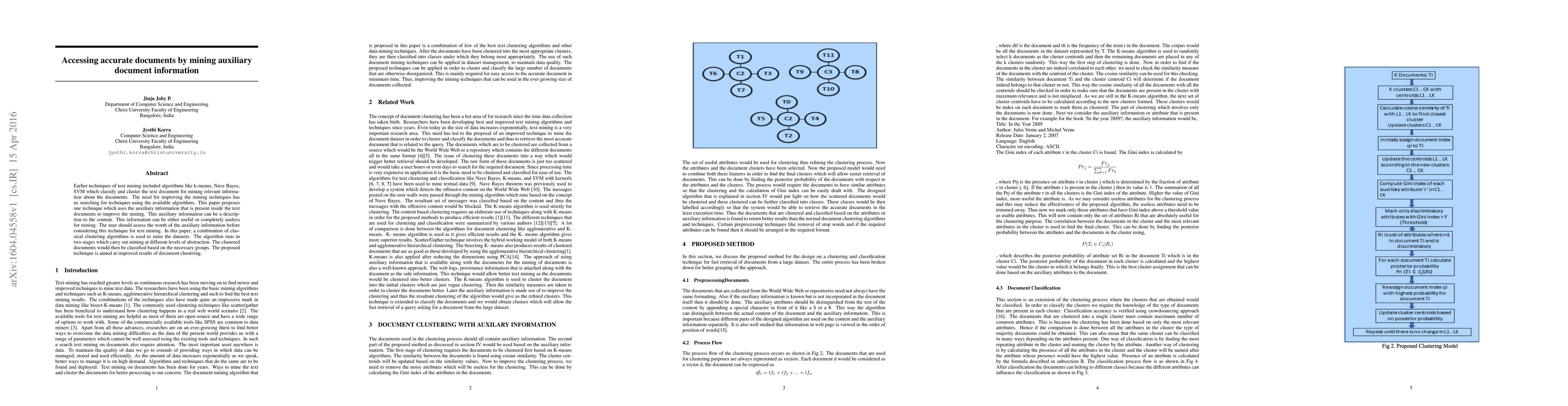This paper proposes a technique to improve document clustering by using auxiliary information in text documents, aiming for better results through a two-stage algorithmic approach.