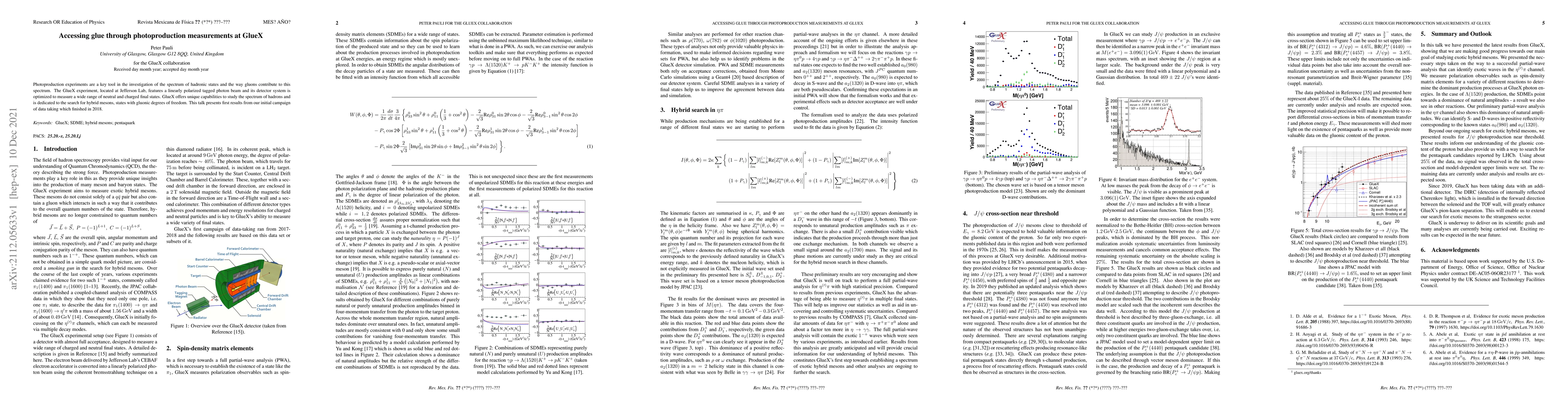 The GlueX experiment at Jefferson Lab uses photoproduction measurements to explore the spectrum of hadronic states and gluon contributions, focusing on hybrid mesons. Initial results from the first data campaign in 2018 provide insights into these investigations.