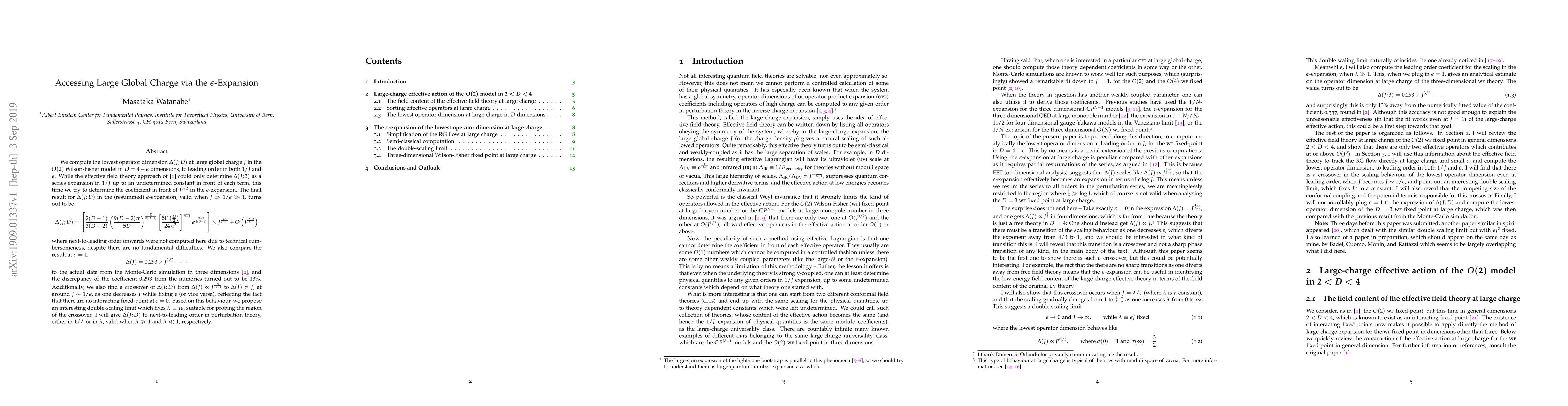 Researchers calculated the lowest operator dimension in a 2D model with varying dimensions and global charge, finding a crossover point where the dimension scales with or without charge.