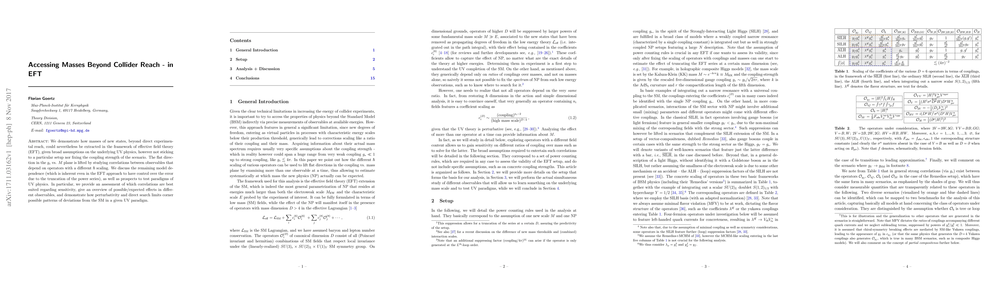 We demonstrate how masses of new states, beyond direct experimental reach, could nevertheless be extracted in the framework of effective field theory (EFT), given broad assumptions on the underlying UV physics, however not sticking to a particular setup nor fixing the coupling strength of the scenario. The flat direction in the $g_\ast$ vs. $M$ plane is lifted by studying correlations between observables that depend on operators with a different $\hbar$ scaling. We discuss the remaining model dependence (which is inherent even in the EFT approach to have control over the error due to the truncation of the power series), as well as prospects to test paradigms of UV physics. In particular, we provide an assessment of which correlations are best suited regarding sensitivity, give an overview of possible/expected effects in different observables, and demonstrate how perturbativity and direct search limits corner possible patterns of deviations from the SM in a given UV paradigm.