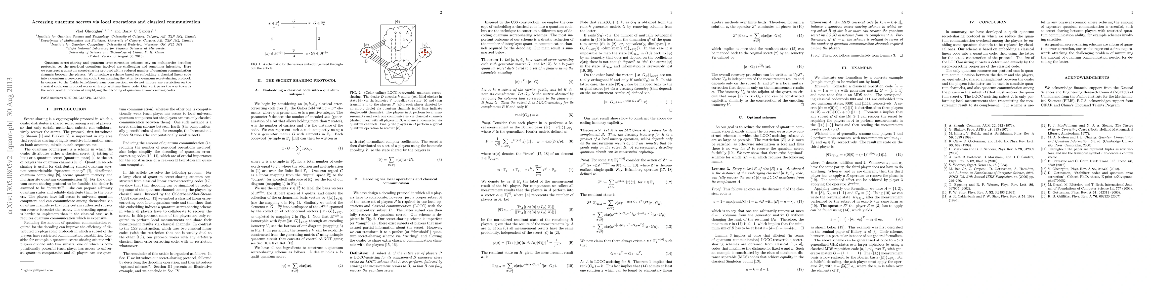 Quantum secret-sharing and quantum error-correction schemes rely on multipartite decoding protocols, yet the non-local operations involved are challenging and sometimes infeasible. Here we construct a quantum secret-sharing protocol with a reduced number of quantum communication channels between the players. Our scheme is based on embedding a classical linear code into a quantum error-correcting code. Our work paves the way towards the more general problem of simplifying the decoding of quantum error-correcting codes.