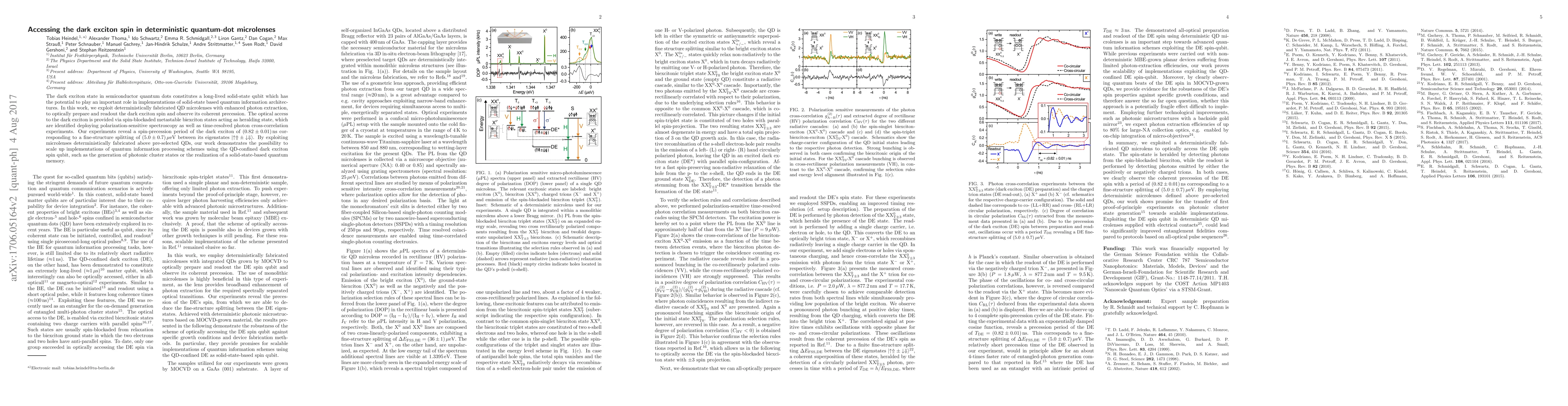 This paper explores the use of deterministically fabricated quantum-dot microlenses to optically prepare and read out the dark exciton spin, observing its coherent precession. The study reveals a spin-precession period of 0.82 ns, demonstrating the potential for scalable quantum information processing using the dark exciton spin qubit.