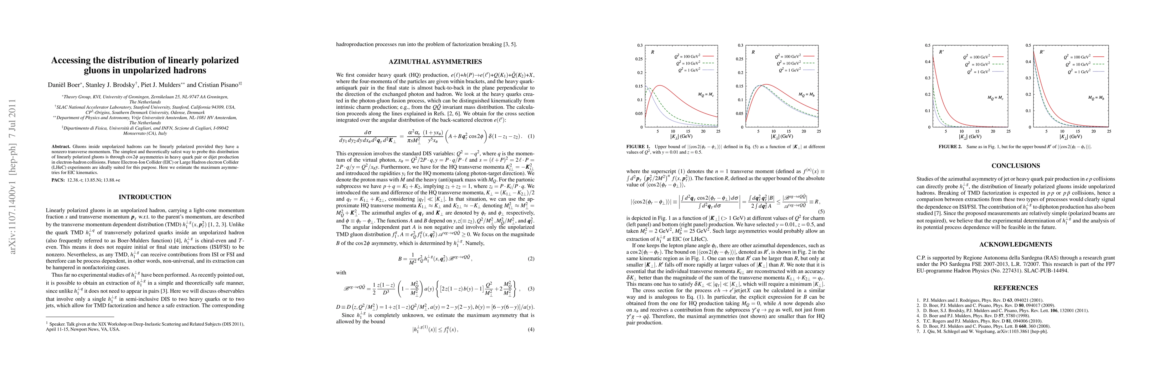 This paper explores the distribution of linearly polarized gluons within unpolarized hadrons, suggesting that cos(2 phi) asymmetries in heavy quark pair or dijet production in electron-hadron collisions can reveal this distribution. Future experiments at the EIC or LHeC are highlighted as optimal for these measurements.