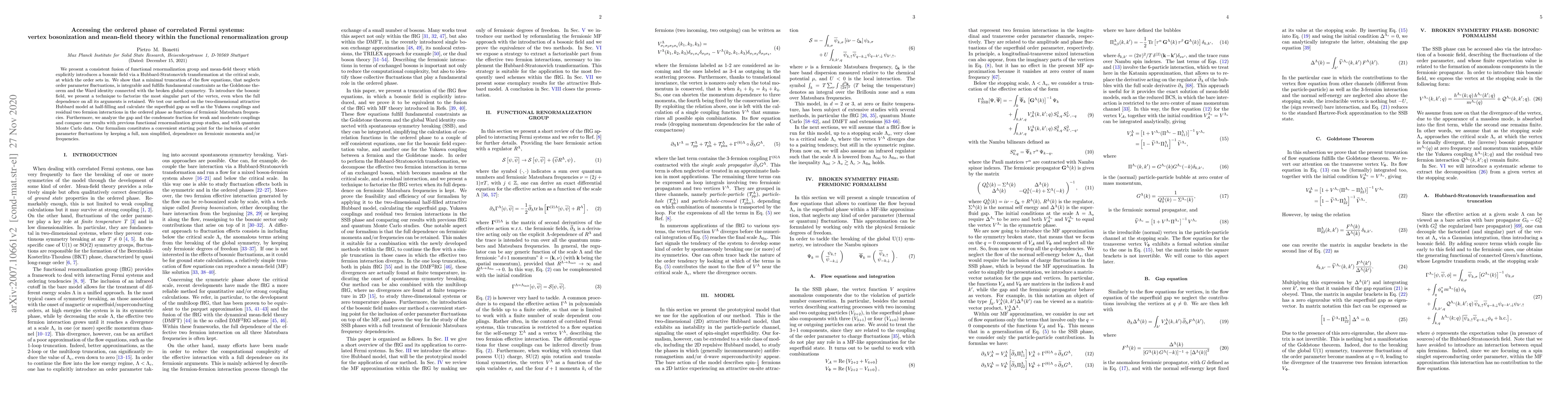 This paper combines functional renormalization group and mean-field theory to introduce a bosonic field via a Hubbard-Stratonovich transformation, focusing on the critical scale where order emerges. The method is tested on the two-dimensional attractive Hubbard model, providing results for the superfluid gap and interactions in the ordered phase.