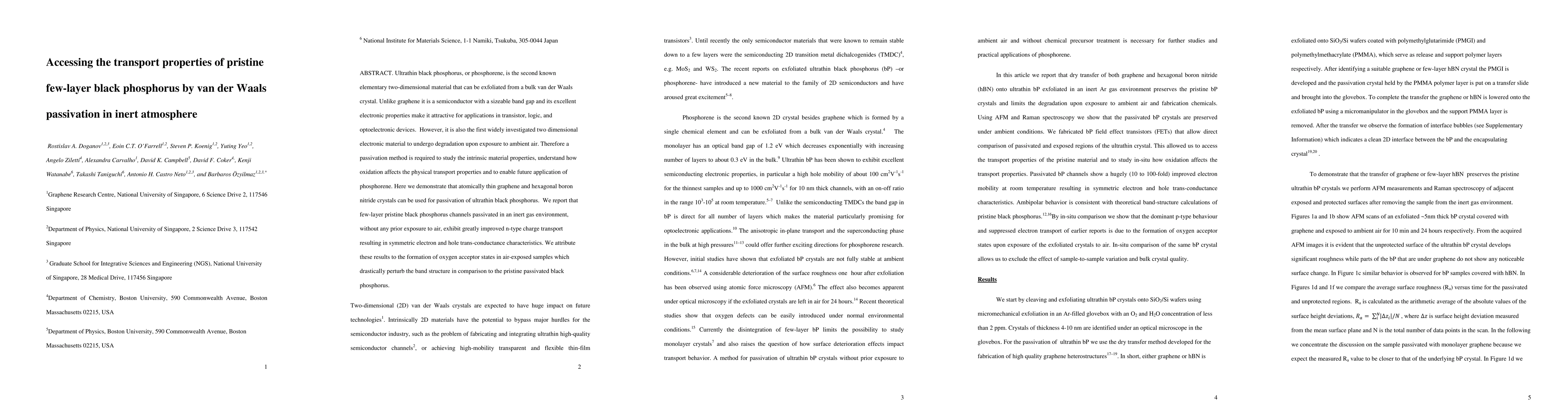This paper demonstrates that van der Waals passivation using graphene or hexagonal boron nitride can significantly enhance the transport properties of pristine few-layer black phosphorus by preventing oxidation, leading to improved n-type charge transport and symmetric electron-hole trans-conductance. The study highlights the importance of inert atmosphere passivation to maintain intrinsic material properties.