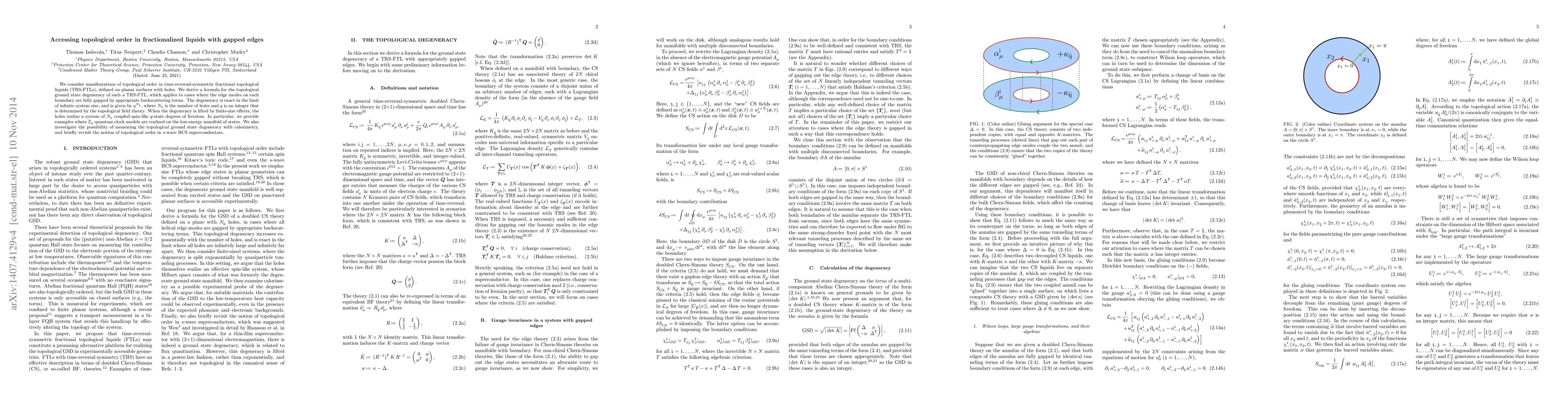 We consider manifestations of topological order in time-reversal-symmetric fractional topological liquids (TRS-FTLs), defined on planar surfaces with holes. We derive a formula for the topological ground state degeneracy of such a TRS-FTL, which applies to cases where the edge modes on each boundary are fully gapped by appropriate backscattering terms. The degeneracy is exact in the limit of infinite system size, and is given by $q^{N^{\,}_{\mathrm{h}}}$, where $N^{\,}_{\mathrm{h}}$ is the number of holes and $q$ is an integer that is determined by the topological field theory. When the degeneracy is lifted by finite-size effects, the holes realize a system of $N^{\,}_{\mathrm{h}}$ coupled spin-like $q$-state degrees of freedom. In particular, we provide examples where $\mathbb Z^{\,}_{q}$ quantum clock models are realized on the low-energy manifold of states. We also investigate the possibility of measuring the topological ground state degeneracy with calorimetry, and briefly revisit the notion of topological order in $s$-wave BCS superconductors.