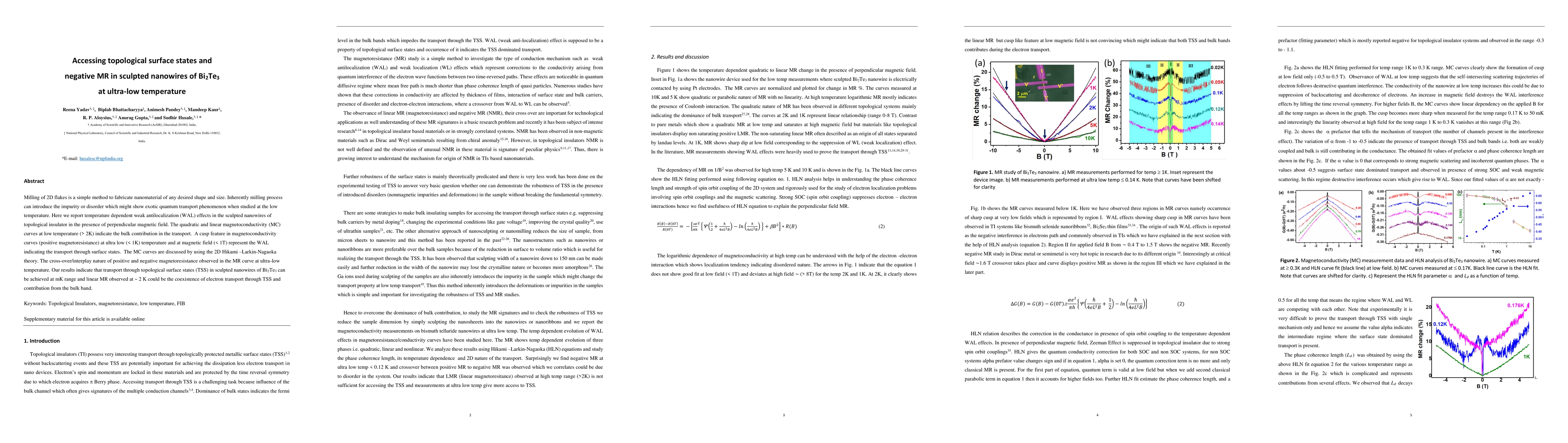 Milling of 2D flakes is a simple method to fabricate nanomaterial of any desired shape and size. Inherently milling process can introduce the impurity or disorder which might show exotic quantum transport phenomenon when studied at the low temperature. Here we report temperature dependent weak antilocalization (WAL) effects in the sculpted nanowires of topological insulator in the presence of perpendicular magnetic field. The quadratic and linear magnetoconductivity (MC) curves at low temperature indicate the bulk contribution in the transport. A cusp feature in magnetoconductivity curves (positive magnetoresistance) at ultra low temperature and at magnetic field, less than 1T represent the WAL indicating the transport through surface states. The MC curves are discussed by using the 2D Hikami Larkin Nagaoka theory. The crossover interplay nature of positive and negative magnetoresistance observed in the MR curve at ultra low temperature. Our results indicate that transport through topological surface states (TSS) in sculpted nanowires of Bi2Te3 can be achieved at mK range and linear MR observed at 2 K could be the coexistence of electron transport through TSS and contribution from the bulk band.