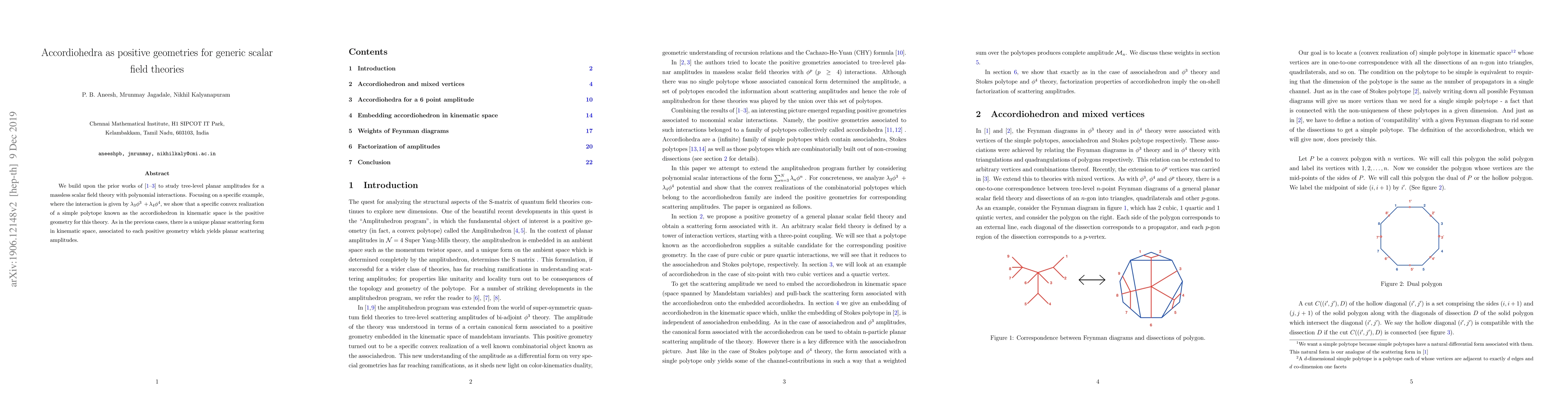 We build upon the prior works of [1-3] to study tree-level planar amplitudes for a massless scalar field theory with polynomial interactions. Focusing on a specific example, where the interaction is given by $\lambda_3\phi^{3}\ +\lambda_4 \phi^{4}$, we show that a specific convex realization of a simple polytope known as the accordiohedron in kinematic space is the positive geometry for this theory. As in the previous cases, there is a unique planar scattering form in kinematic space, associated to each positive geometry which yields planar scattering amplitudes.