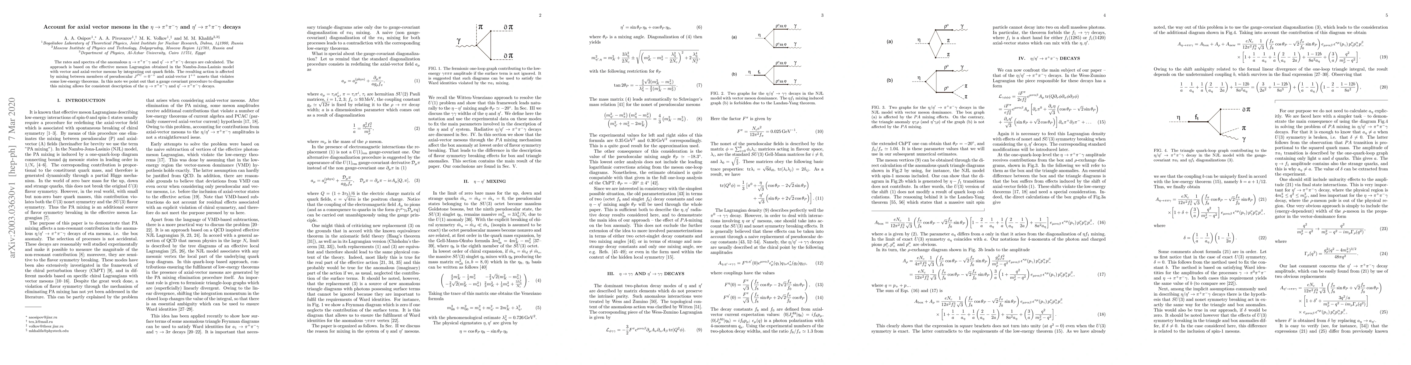 The rates and spectra of the anomalous $\eta\to\pi^+\pi^-\gamma$ and $\eta' \to\pi^+\pi^-\gamma$ decays are calculated. The approach is based on the effective meson Lagrangian obtained in the Nambu-Jona-Lasinio model with vector and axial-vector mesons by integrating out quark fields. The resulting action is affected by mixing between members of pseudoscalar $J^{PC}=0^{-+}$ and axial-vector $1^{++}$ nonets that violates some low-energy theorems. In this note we point out that a gauge covariant procedure to diagonalize this mixing allows for consistent description of the $\eta\to\pi^+\pi^-\gamma$ and $\eta' \to\pi^+\pi^-\gamma$ decays.