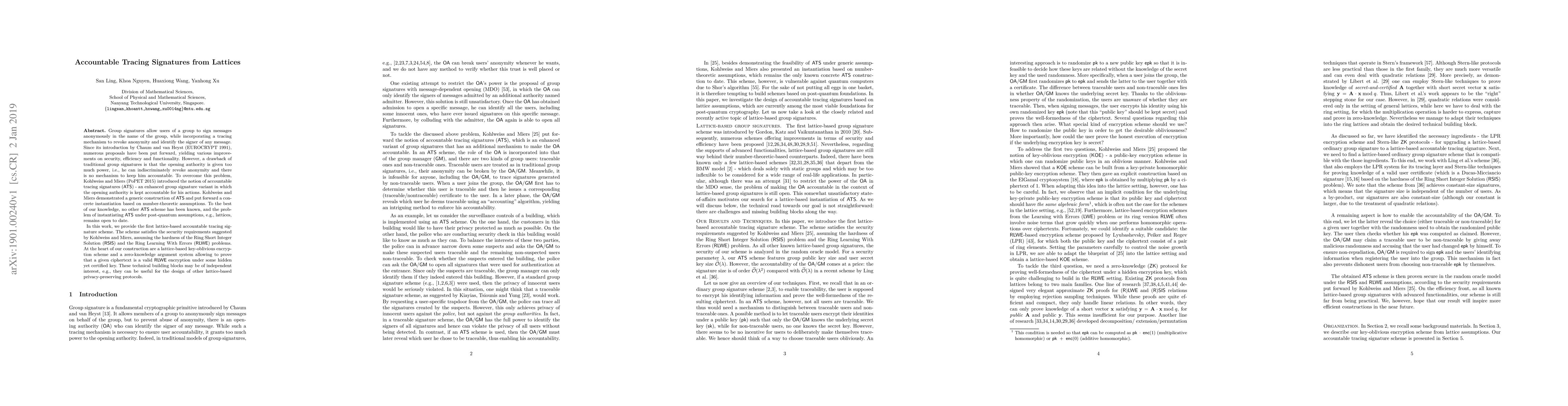 Researchers have developed the first lattice-based accountable tracing signature scheme, enhancing group signatures to keep the opening authority accountable for revoking anonymity.