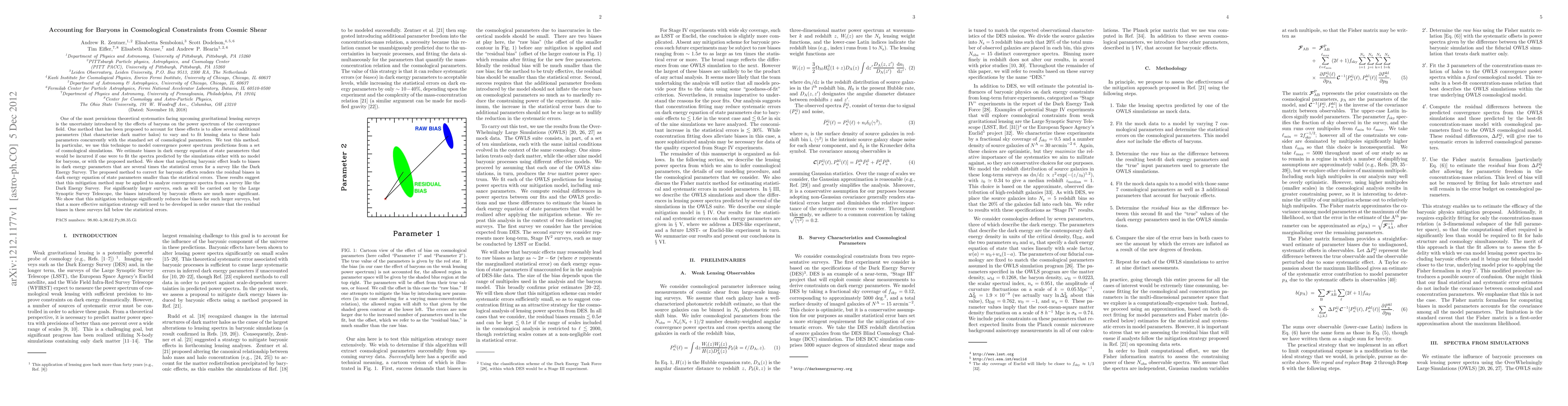 Fitting baryonic effects into gravitational lensing data helps reduce biases in dark energy parameters, but larger surveys require more effective mitigation strategies.