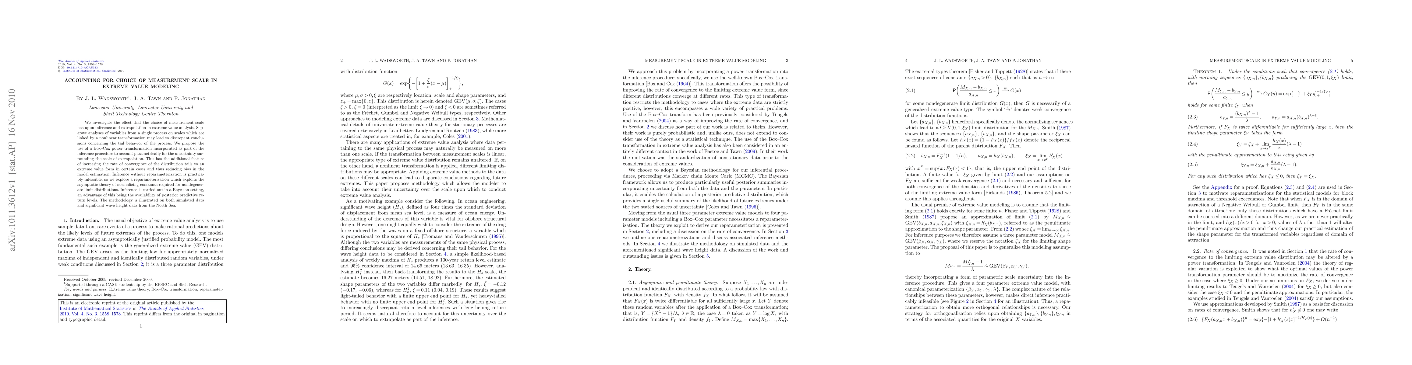 We investigate the effect that the choice of measurement scale has upon inference and extrapolation in extreme value analysis. Separate analyses of variables from a single process on scales which are linked by a nonlinear transformation may lead to discrepant conclusions concerning the tail behavior of the process. We propose the use of a Box--Cox power transformation incorporated as part of the inference procedure to account parametrically for the uncertainty surrounding the scale of extrapolation. This has the additional feature of increasing the rate of convergence of the distribution tails to an extreme value form in certain cases and thus reducing bias in the model estimation. Inference without reparameterization is practicably infeasible, so we explore a reparameterization which exploits the asymptotic theory of normalizing constants required for nondegenerate limit distributions. Inference is carried out in a Bayesian setting, an advantage of this being the availability of posterior predictive return levels. The methodology is illustrated on both simulated data and significant wave height data from the North Sea.