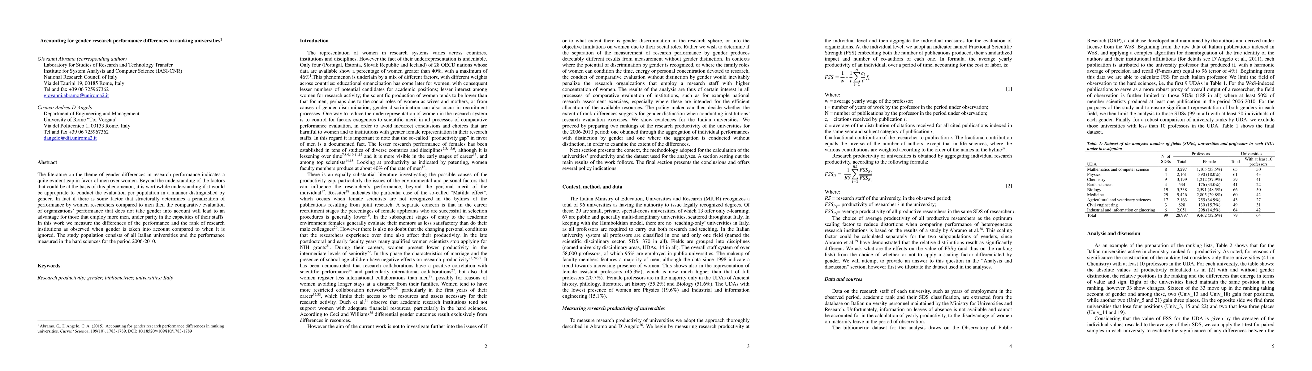This paper examines gender differences in research performance among Italian universities, finding a significant gap favoring men. It investigates whether gender-specific evaluations could be more equitable, suggesting that current ranking methods may unfairly benefit institutions with more male researchers.