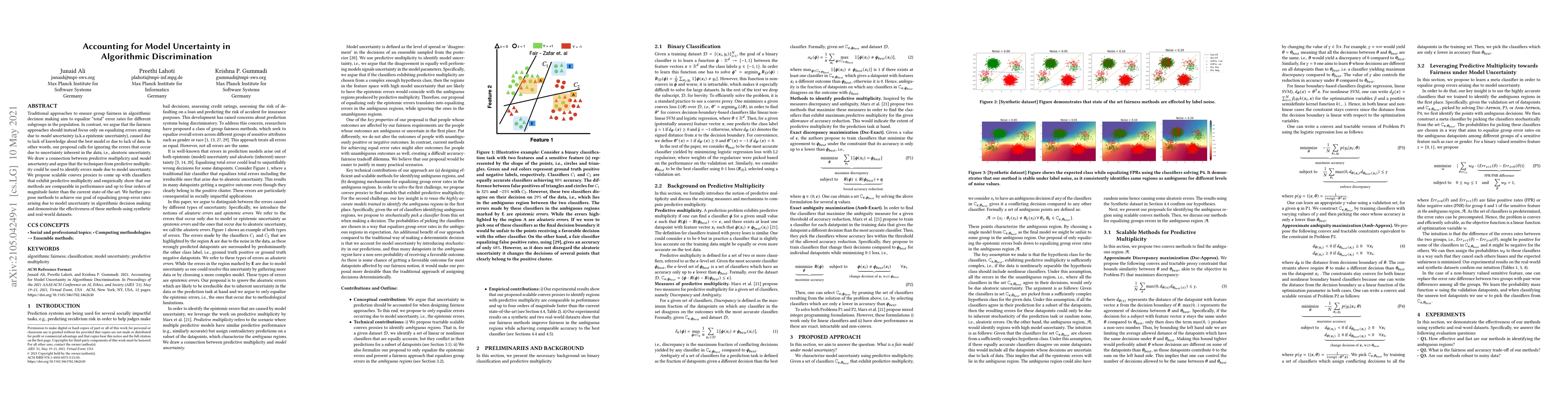 Traditional approaches to ensure group fairness in algorithmic decision making aim to equalize ``total'' error rates for different subgroups in the population. In contrast, we argue that the fairness approaches should instead focus only on equalizing errors arising due to model uncertainty (a.k.a epistemic uncertainty), caused due to lack of knowledge about the best model or due to lack of data. In other words, our proposal calls for ignoring the errors that occur due to uncertainty inherent in the data, i.e., aleatoric uncertainty. We draw a connection between predictive multiplicity and model uncertainty and argue that the techniques from predictive multiplicity could be used to identify errors made due to model uncertainty. We propose scalable convex proxies to come up with classifiers that exhibit predictive multiplicity and empirically show that our methods are comparable in performance and up to four orders of magnitude faster than the current state-of-the-art. We further propose methods to achieve our goal of equalizing group error rates arising due to model uncertainty in algorithmic decision making and demonstrate the effectiveness of these methods using synthetic and real-world datasets.