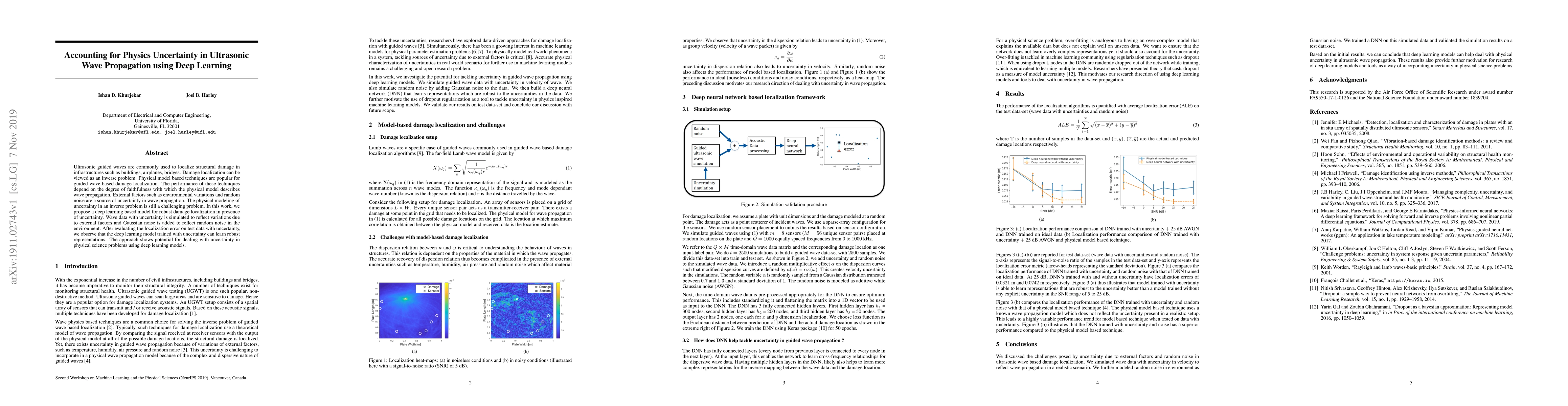 This paper proposes a deep learning model for robust ultrasonic guided wave localization in the presence of physical uncertainty due to environmental variations and noise. The model demonstrates improved performance in damage localization by learning robust representations from simulated wave data with added uncertainty.