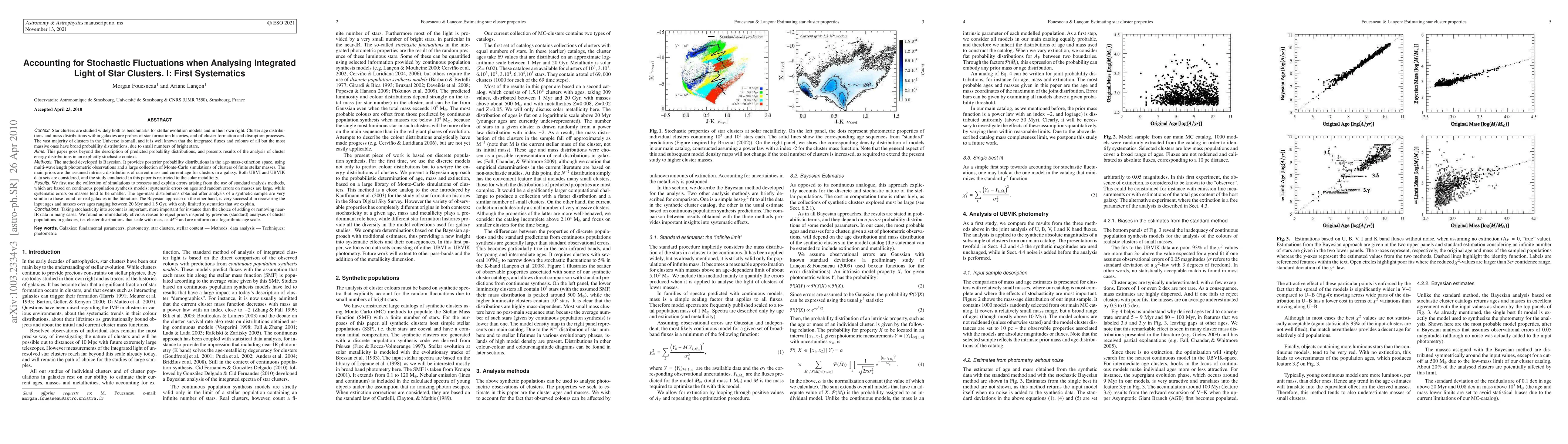 Star clusters are studied widely both as benchmarks for stellar evolution models and in their own right. Cluster age and mass distributions within galaxies are probes of star formation histories, and of cluster formation and disruption processes. The vast majority of clusters in the Universe is small, and it is well known that the integrated fluxes and colors have broad probability distributions, due to small numbers of bright stars. This paper goes beyond the description of predicted probability distributions, and presents results of the analysis of cluster energy distributions in an explicitly stochastic context. The method developed is Bayesian. It provides posterior probability distributions in the age-mass-extinction space, using multi-wavelength photometric observations and a large collection of Monte-Carlo simulations of clusters of finite stellar masses. Both UBVI and UBVIK datasets are considered, and the study conducted in this paper is restricted to the solar metallicity. We first reassess and explain errors arising from the use of standard analysis methods, which are based on continuous population synthesis models: systematic errors on ages and random errors on masses are large, while systematic errors on masses tend to be smaller. The age-mass distributions obtained after analysis of a synthetic sample are very similar to those found for real galaxies in the literature. The Bayesian approach on the other hand, is very successful in recovering the input ages and masses. Taking stochastic effects into account is important, more important for instance than the choice of adding or removing near-IR data in many cases. We found no immediately obvious reason to reject priors inspired by previous (standard) analyses of cluster populations in galaxies, i.e. cluster distributions that scale with mass as M^-2 and are uniform on a logarithmic age scale.