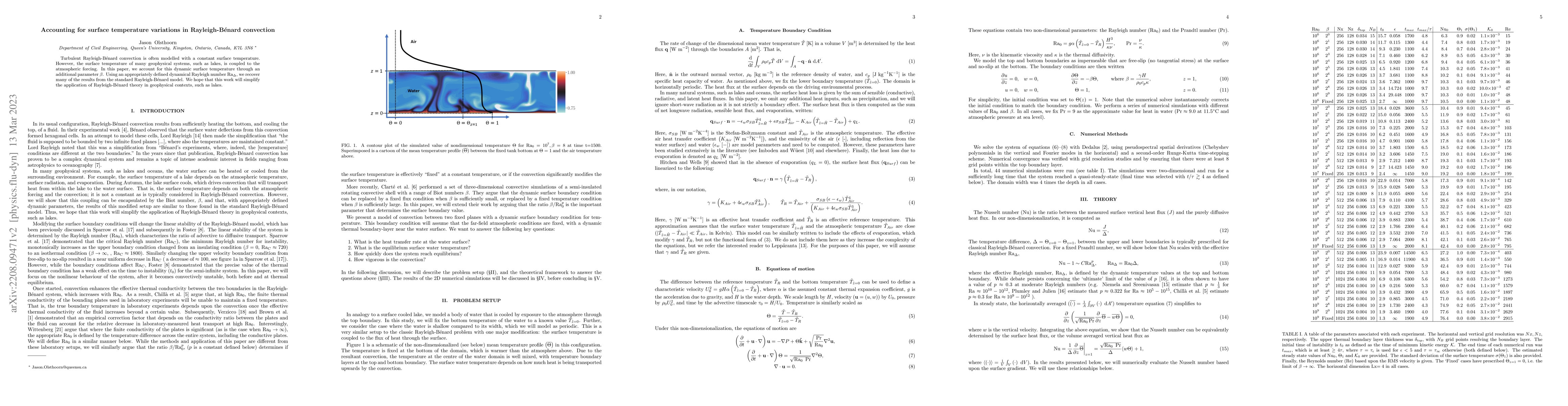 This paper models turbulent Rayleigh-Bénard convection with a dynamic surface temperature, introducing a parameter $\beta$ to account for atmospheric coupling. It redefines the Rayleigh number to maintain standard model results, aiming to enhance the theory's applicability to geophysical systems like lakes.