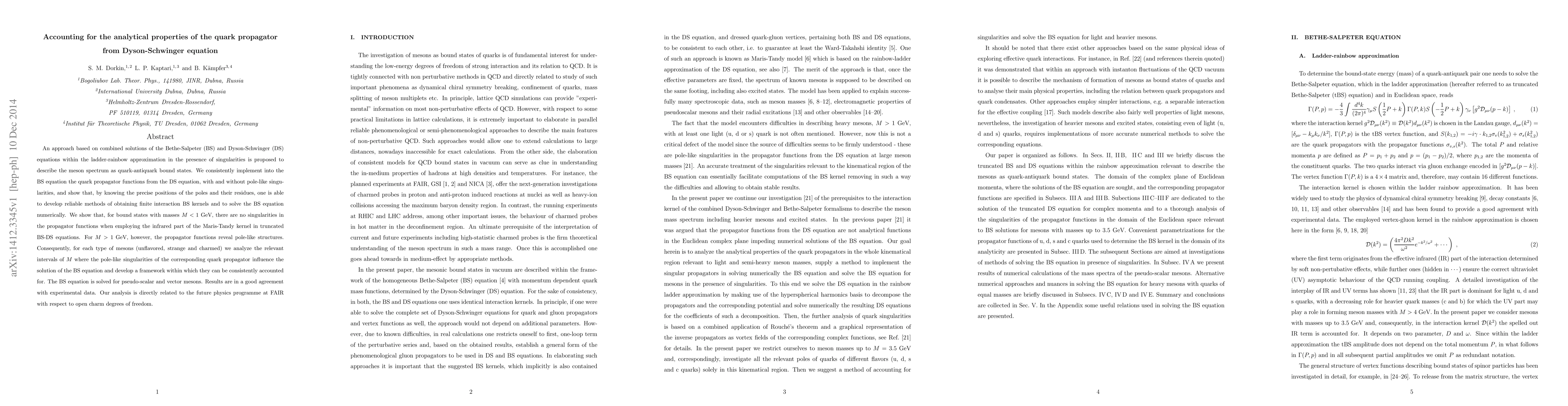 This paper proposes a method combining Bethe-Salpeter and Dyson-Schwinger equations to describe the meson spectrum, showing that the quark propagator's pole-like singularities influence the Bethe-Salpeter equation for mesons with masses above 1 GeV. The approach provides a framework for accounting for these singularities and yields results consistent with experimental data.