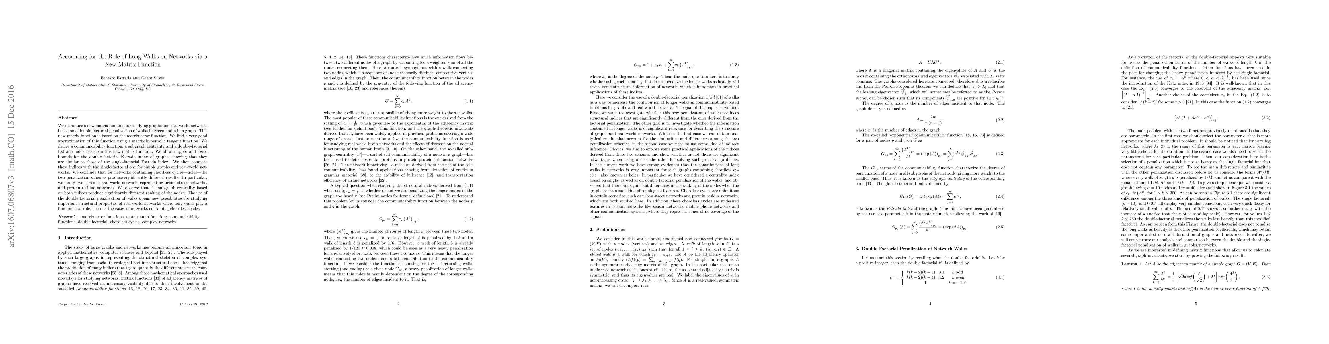 We introduce a new matrix function for studying graphs and real-world networks based on a double-factorial penalization of walks between nodes in a graph. This new matrix function is based on the matrix error function. We find a very good approximation of this function using a matrix hyperbolic tangent function. We derive a communicability function, a subgraph centrality and a double-factorial Estrada index based on this new matrix function. We obtain upper and lower bounds for the double-factorial Estrada index of graphs, showing that they are similar to those of the single-factorial Estrada index. We then compare these indices with the single-factorial one for simple graphs and real-world networks. We conclude that for networks containing chordless cycles---holes---the two penalization schemes produce significantly different results. In particular, we study two series of real-world networks representing urban street networks, and protein residue networks. We observe that the subgraph centrality based on both indices produce significantly different ranking of the nodes. The use of the double factorial penalization of walks opens new possibilities for studying important structural properties of real-world networks where long-walks play a fundamental role, such as the cases of networks containing chordless cycles.