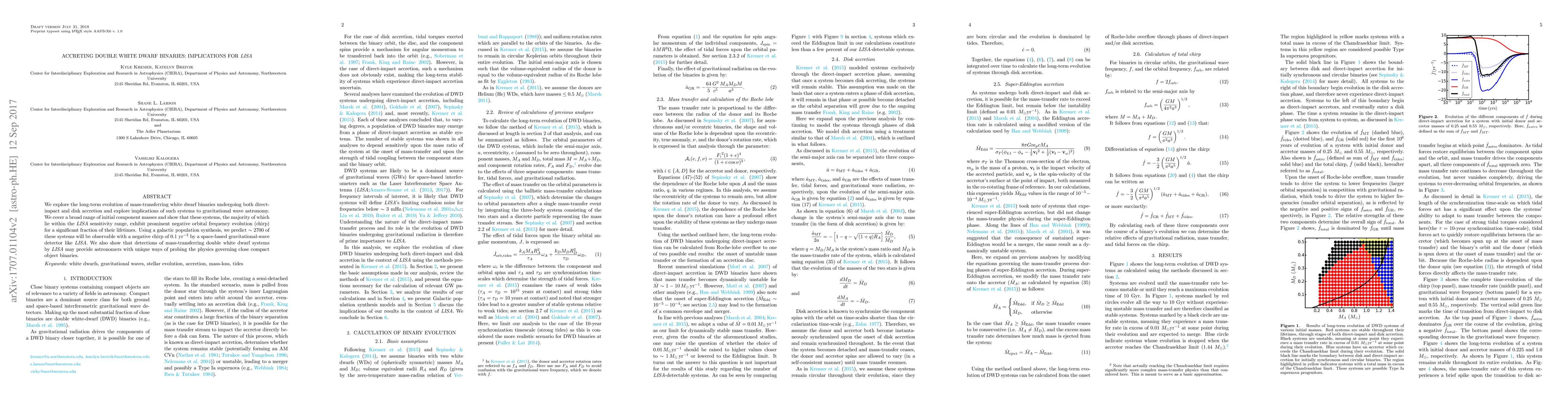 This paper investigates the long-term evolution of mass-transferring double white dwarf binaries, focusing on their gravitational wave signatures and implications for LISA. The study predicts that around 2700 such systems will be detectable by LISA, offering insights into the physics of close compact object binaries.