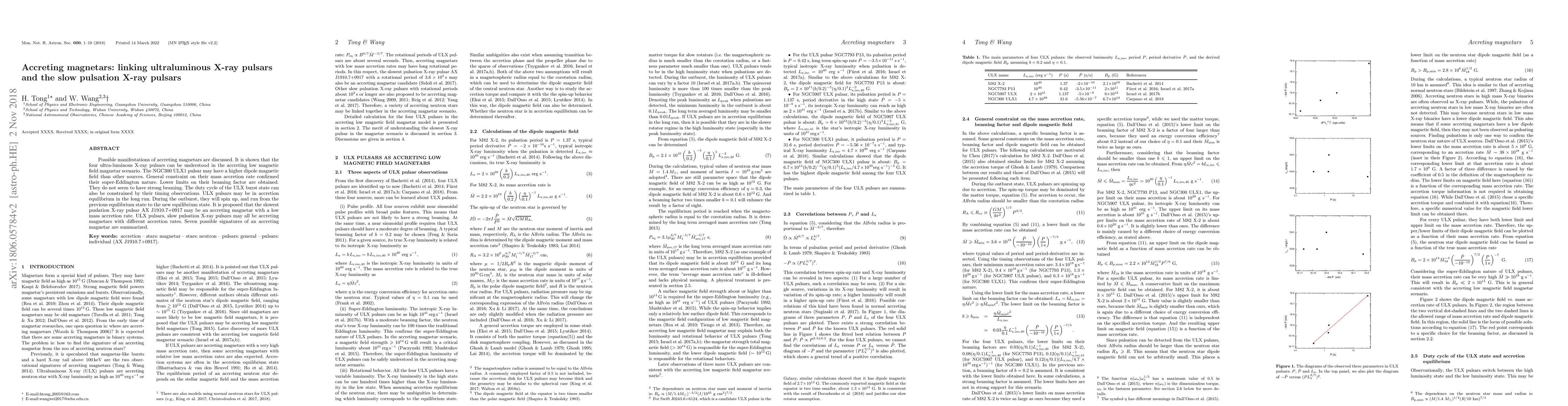 This paper explores the connection between ultraluminous X-ray pulsars (ULXs) and slow pulsation X-ray pulsars, proposing that both may be accreting magnetars with varying accretion rates. The study confirms their super-Eddington nature and identifies seven potential signatures of accreting magnetars.