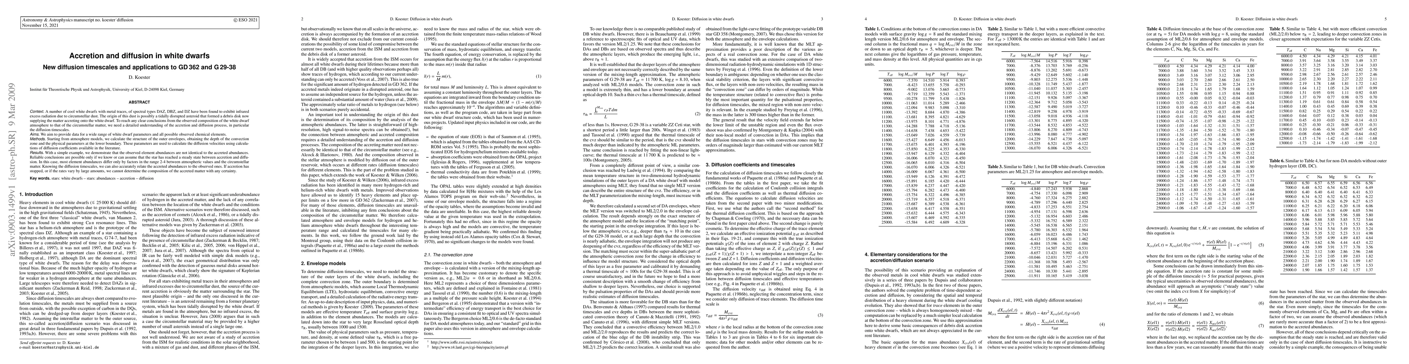 Researchers studied accretion and diffusion in white dwarfs, finding that dust formed from debris disks can hide the true composition of these stars. They developed new diffusion timescales to better understand how elements mix within the star's atmosphere.