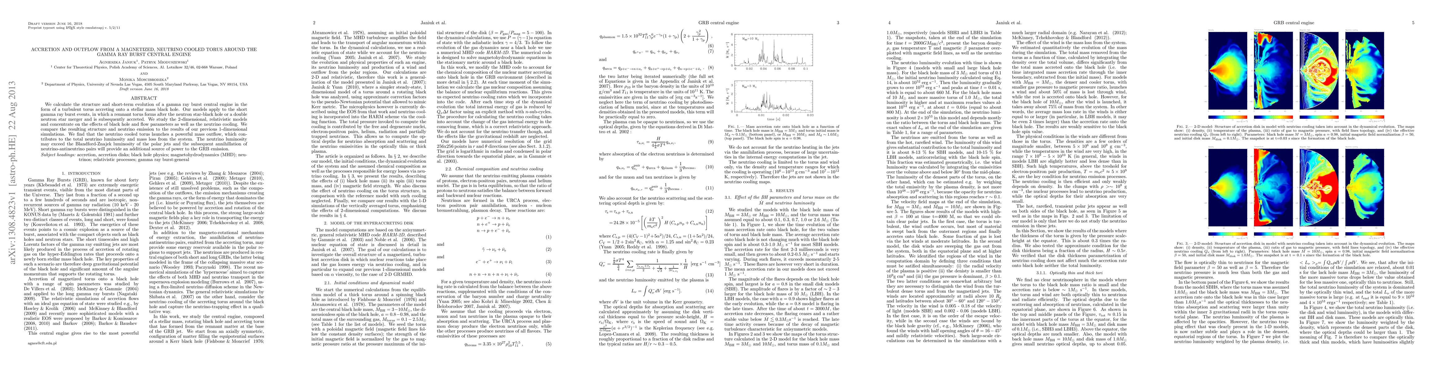 This paper investigates the dynamics of a magnetized, neutrino-cooled torus around a gamma-ray burst central engine, finding that it launches powerful outflows and contributes significantly to the total neutrino luminosity, potentially powering the GRB emission through neutrino-antineutrino annihilation.