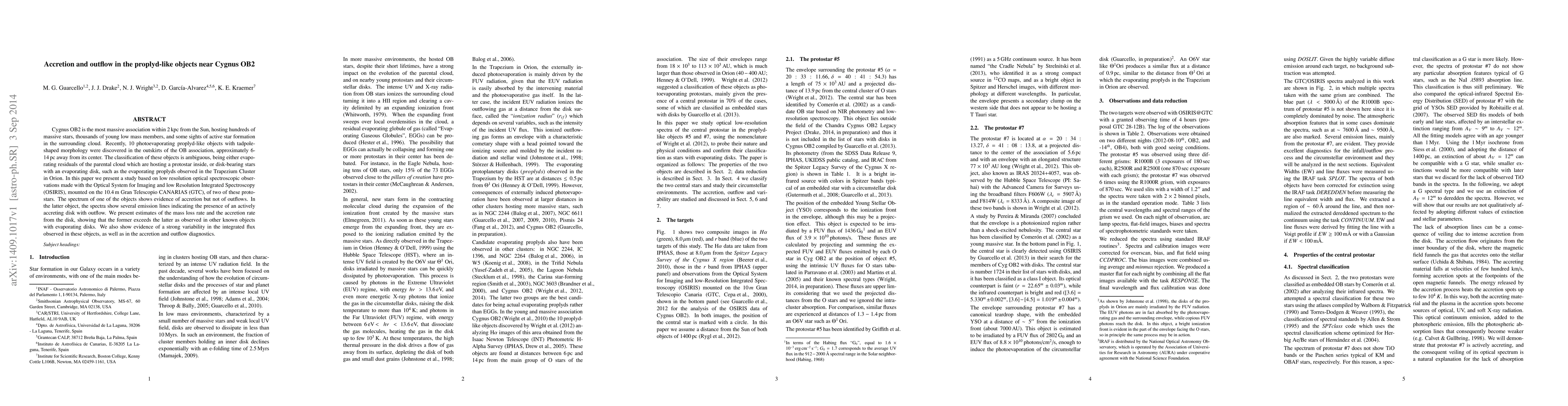 This study, using the GTC telescope, examined two proplyd-like objects near Cygnus OB2. One showed accretion without outflows, while the other exhibited an actively accretion disk with outflows. The research found mass loss rates exceeding accretion rates and significant variability in flux and diagnostics, contributing to understanding these ambiguous star formation features.