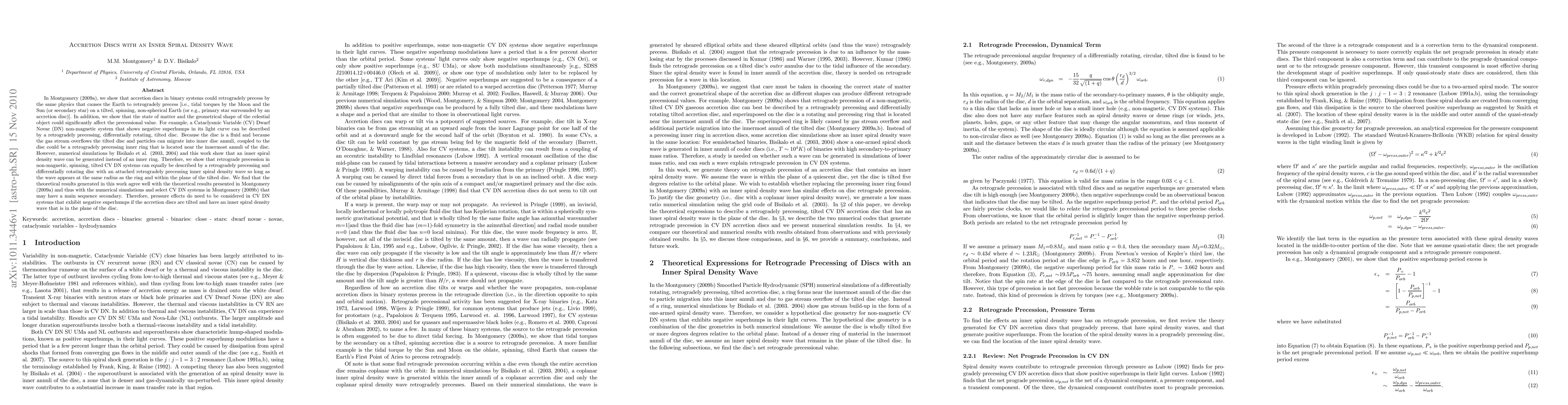 In Montgomery (2009a), we show that accretion discs in binary systems could retrogradely precess by tidal torques like the Moon and the Sun on a tilted, spinning, non-spherical Earth. In addition, we show that the state of matter and the geometrical shape of the celestial object could significantly affect the precessional value. For example, a Cataclysmic Variable (CV) Dwarf Novae (DN) non-magnetic system that shows negative superhumps in its light curve can be described by a retrogradely precessing, differentially rotating, tilted disc. Because the disc is a fluid and because the gas stream overflows the tilted disc and particles can migrate into inner disc annuli, coupled to the disc could be a retrogradely precessing inner ring that is located near the innermost annuli of the disc. However, numerical simulations by Bisikalo et al. (2003, 2004) and this work show that an inner spiral density wave can be generated instead of an inner ring. Therefore, we show that retrograde precession in non-magnetic, spinning, tilted CV DN systems can equally be described by a retrogradely precessing and differentially rotating disc with an attached retrogradely precessing inner spiral density wave so long as the wave appears at the same radius as the ring and within the plane of the tilted disc. We find that the theoretical results generated in this work agree well with the theoretical results presented in Montgomery (2009a) and thus with the numerical simulations and select CV DN systems in Montgomery (2009b) that may have a main sequence secondary. Therefore, pressure effects do need to be considered in CV DN systems that exhibit negative superhumps if the accretion discs are tilted and have an inner spiral density wave that is in the plane of the disc.