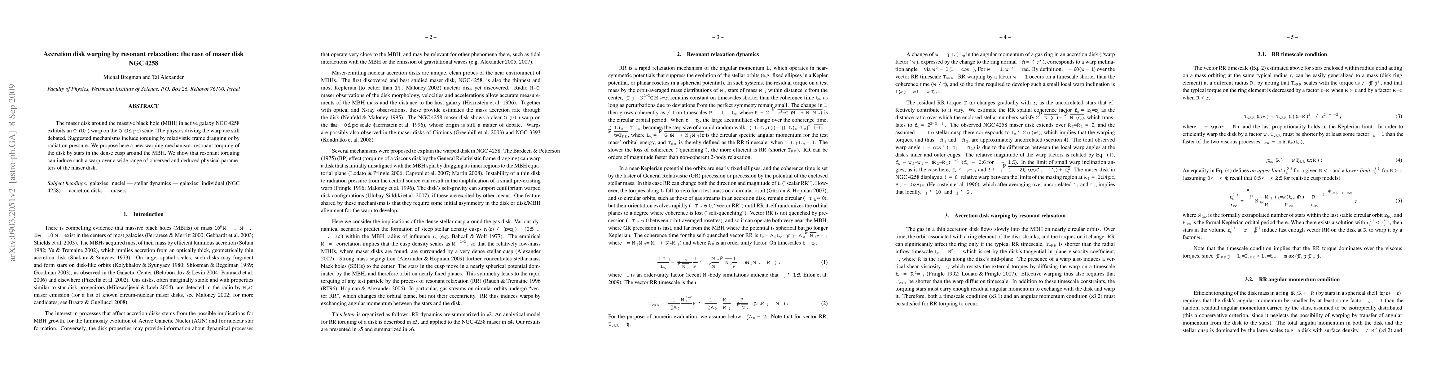 The maser disk around the massive black hole (MBH) in active galaxy NGC 4258 exhibits an O(10 deg) warp on the O(0.1 pc) scale. The physics driving the warp are still debated. Suggested mechanisms include torquing by relativistic frame dragging or by radiation pressure. We propose here a new warping mechanism: resonant torquing of the disk by stars in the dense cusp around the MBH. We show that resonant torquing can induce such a warp over a wide range of observed and deduced physical parameters of the maser disk.