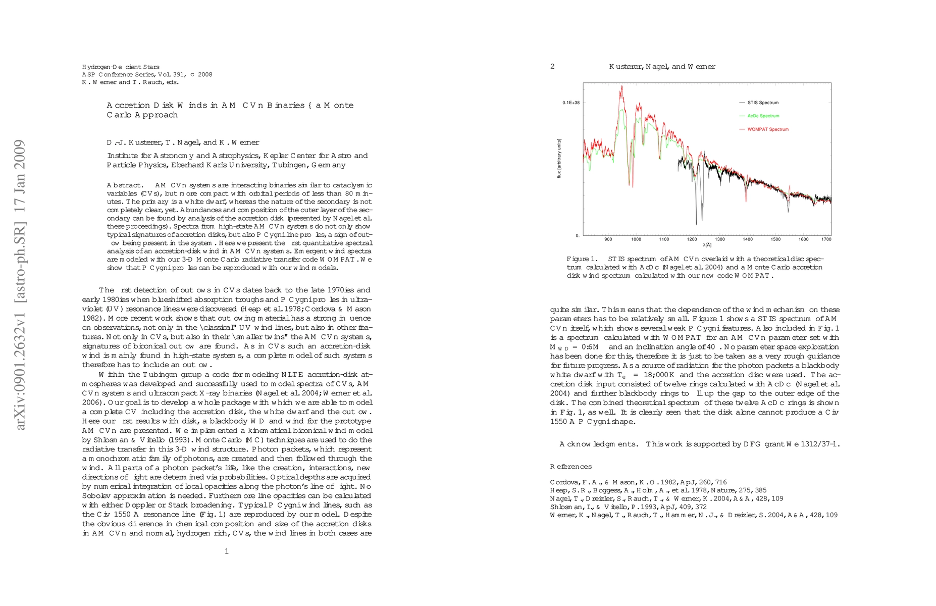 This paper presents a quantitative spectral analysis of accretion disk winds in AM CVn binaries using a 3-D Monte Carlo radiative transfer code, demonstrating that the observed P Cygni line profiles can be reproduced by the modeled wind spectra. The study aims to understand the nature of the secondary component in these compact binaries.