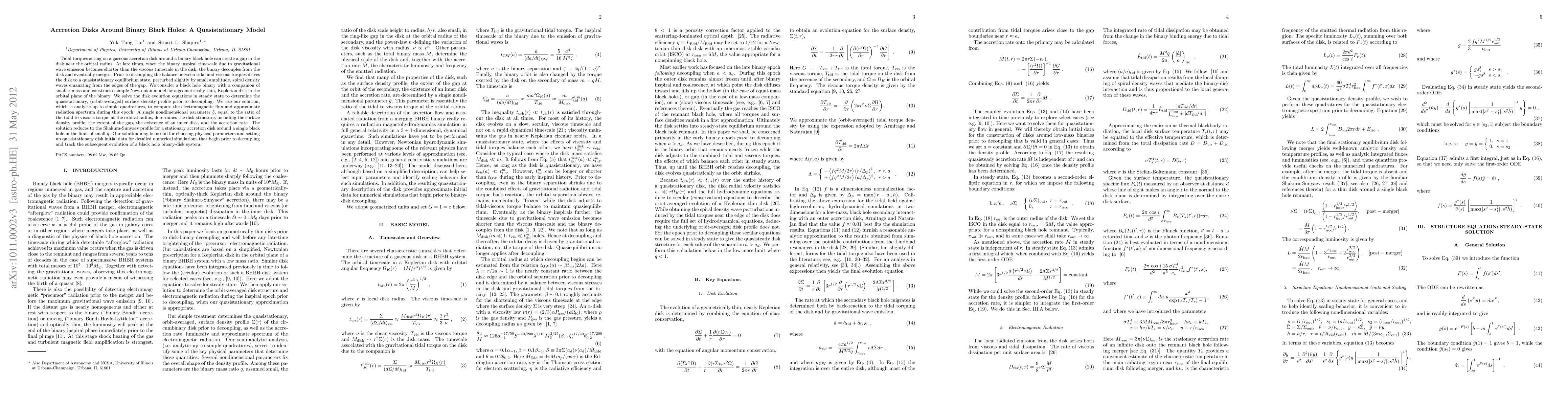 Tidal torques acting on a gaseous accretion disk around a binary black hole can create a gap in the disk near the orbital radius. At late times, when the binary inspiral timescale due to gravitational wave emission becomes shorter than the viscous timescale in the disk, the binary decouples from the disk and eventually merges. Prior to decoupling the balance between tidal and viscous torques drives the disk to a quasistationary equilibrium state, perturbed slightly by small amplitude, spiral density waves emanating from the edges of the gap. We consider a black hole binary with a companion of smaller mass and construct a simple Newtonian model for a geometrically thin, Keplerian disk in the orbital plane of the binary. We solve the disk evolution equations in steady state to determine the quasistationary, (orbit-averaged) surface density profile prior to decoupling. We use our solution, which is analytic up to simple quadratures, to compute the electromagnetic flux and approximate radiation spectrum during this epoch. A single nondimensional parameter Td/Tvis, equal to the ratio of the tidal to viscous torque at the orbital radius, determines the disk structure, including the surface density profile, the extent of the gap, the existence of an inner disk, and the accretion rate. The solution reduces to the Shakura-Sunyaev profile for a stationary accretion disk around a single black hole in the limit of small Td/Tvis. Our solution may be useful for choosing physical parameters and setting up quasistationary disk initial data for detailed numerical simulations that begin prior to decoupling and track the subsequent evolution of a black hole binary-disk system.