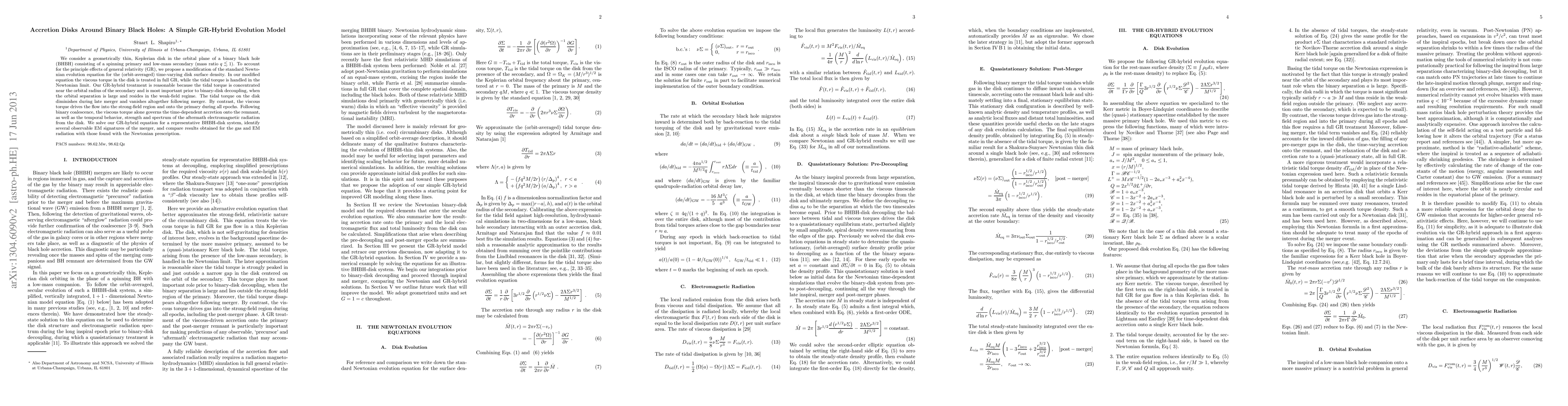 We consider a geometrically thin, Keplerian disk in the orbital plane of a binary black hole (BHBH) consisting of a spinning primary and low-mass secondary (mass ratio q < 1). To account for the principle effects of general relativity (GR), we propose a modification of the standard Newtonian evolution equation for the (orbit-averaged) time-varying disk surface density. In our modified equation the viscous torque in the disk is treated in full GR, while the tidal torque is handled in the Newtonian limit. Our GR-hybrid treatment is reasonable because the tidal torque is concentrated near the orbital radius of the secondary and is most important prior to binary-disk decoupling, when the orbital separation is large and resides in the weak-field regime. The tidal torque on the disk diminishes during late merger and vanishes altogether following merger. By contrast, the viscous torque drives the flow into the strong-field region and onto the primary during all epochs. Following binary coalescence, the viscous torque alone governs the time-dependent accretion onto the remnant, as well as the temporal behavior, strength and spectrum of the aftermath electromagnetic radiation from the disk. We solve our GR-hybrid equation for a representative BHBH-disk system, identify several observable EM signatures of the merger, and compare results obtained for the gas and EM radiation with those found with the Newtonian prescription.