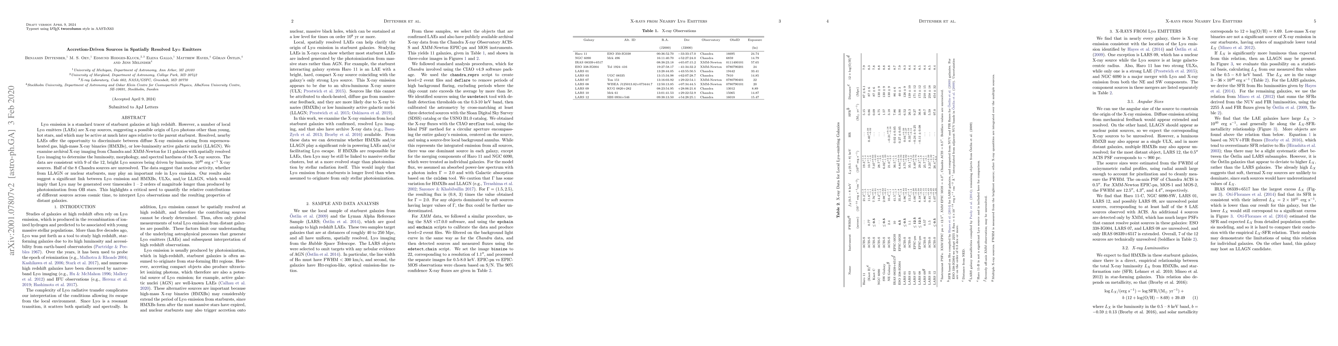 Ly$\alpha$ emission is a standard tracer of starburst galaxies at high redshift. However, a number of local Ly$\alpha$ emitters (LAEs) are X-ray sources, suggesting a possible origin of Ly$\alpha$ photons other than young, hot stars, and which may be active at much later ages relative to the parent starburst. Resolved, nearby LAEs offer the opportunity to discriminate between diffuse X-ray emission arising from supernova-heated gas, high-mass X-ray binaries (HMXBs), or low-luminosity active galactic nuclei (LLAGN). We examine archival X-ray imaging from Chandra and XMM-Newton for 11 galaxies with spatially resolved Ly$\alpha$ imaging to determine the luminosity, morphology, and spectral hardness of the X-ray sources. The data are consistent with 9 of the 12, bright Ly$\alpha$ sources being driven by luminous, $10^{40}$ erg s$^{-1}$ X-ray sources. Half of the 8 Chandra sources are unresolved. The data suggest that nuclear activity, whether from LLAGN or nuclear starbursts, may play an important role in Ly$\alpha$ emission. Our results also suggest a significant link between Ly$\alpha$ emission and HMXBs, ULXs, and/or LLAGN, which would imply that Ly$\alpha$ may be generated over timescales 1 - 2 orders of magnitude longer than produced by photoionization from OB stars. This highlights a critical need to quantify the relative contributions of different sources across cosmic time, to interpret Ly$\alpha$ observations and the resulting properties of distant galaxies.