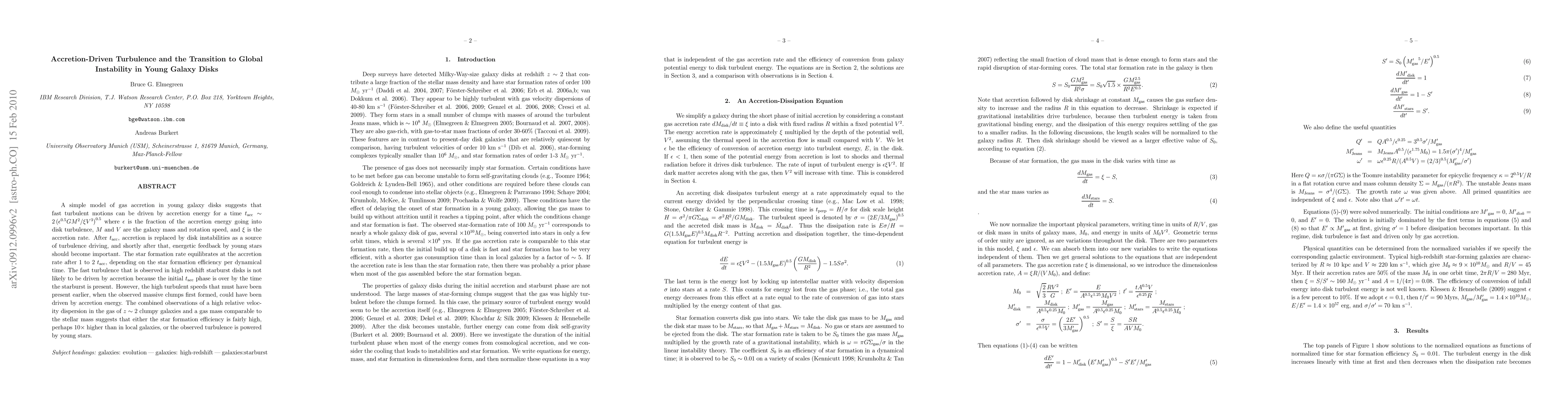 This paper proposes a model where turbulence in young galaxy disks is initially driven by accretion energy, transitioning to disk instabilities and star formation feedback over time. The turbulence observed in high redshift starburst disks likely results from earlier accretion rather than current accretion.