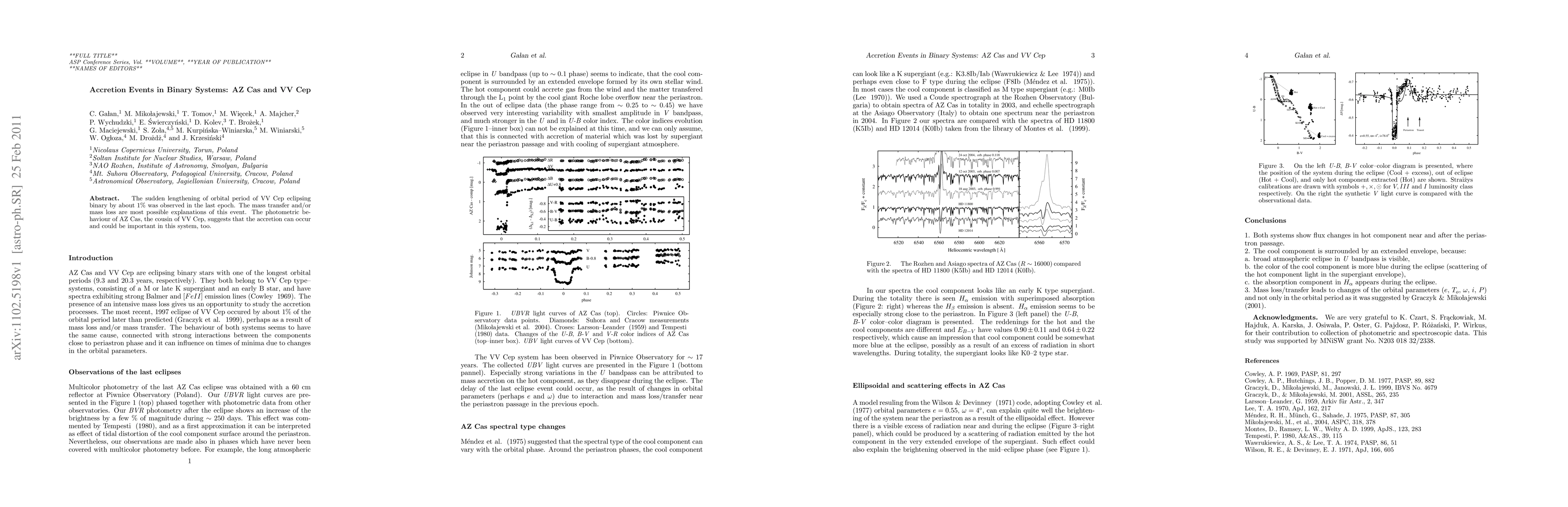 A binary system, VV Cep, experienced a 1% increase in orbital period due to mass transfer or loss, and its cousin AZ Cas shows signs of accretion events that could be relevant to this phenomenon.