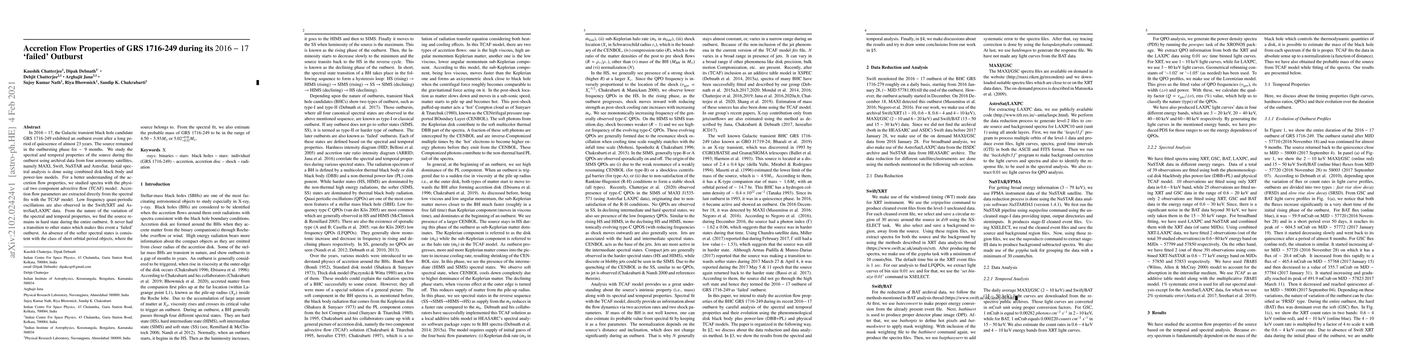A Galactic transient black hole candidate exhibited a 'failed' outburst in 2016-17, with the source remaining in hard state for nearly 9 months. The study of its accretion flow properties using archival data revealed the probable mass of GRS 1716-249 to be between $4.50-5.93 M_ ext{ extcircled{odot}}$.