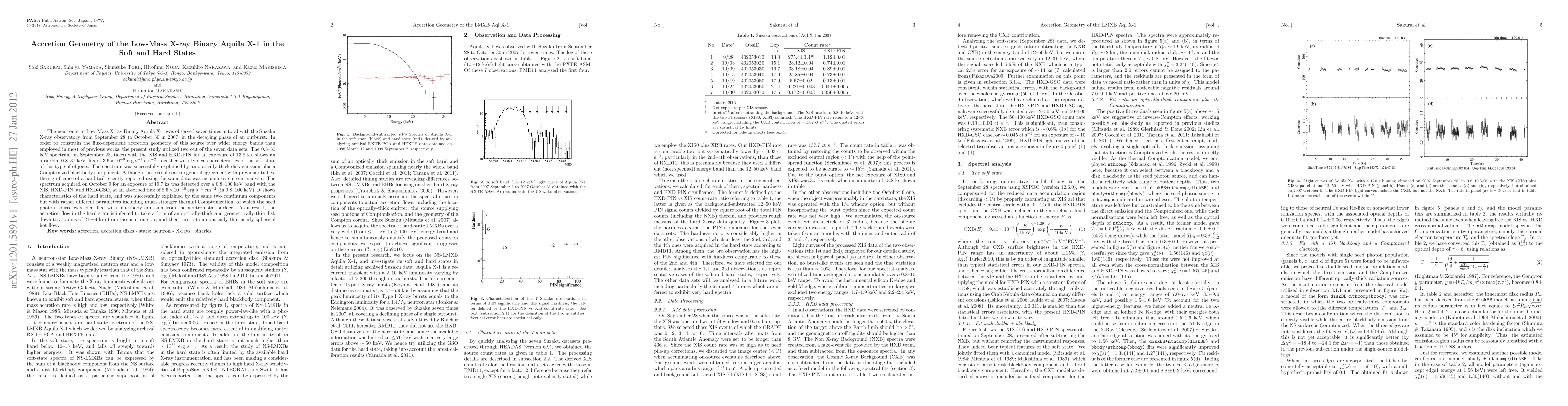 This study analyzes the accretion geometry of Aquila X-1, a neutron-star Low-Mass X-ray Binary, in both its soft and hard states using Suzaku X-ray observatory data. The soft state spectrum shows an optically-thick disk emission plus a Comptonized blackbody component, while the hard state spectrum indicates a transition to stronger thermal Comptonization and a nearly-spherical hot flow.