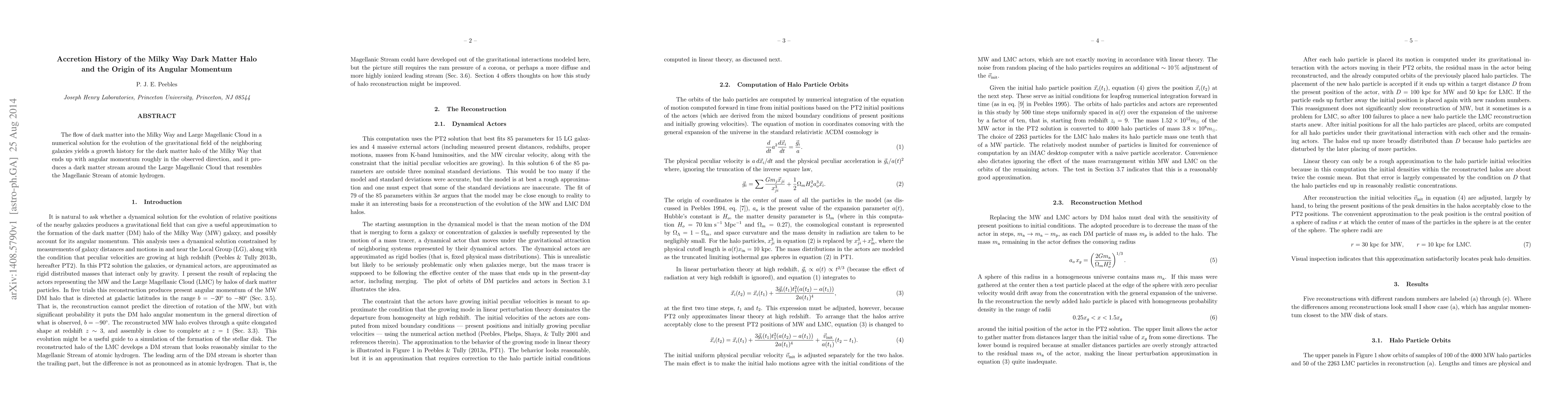 The flow of dark matter into the Milky Way and Large Magellanic Cloud in a model for the gravitational field of the neighboring galaxies yields a growth history for the dark matter halo of the Milky Way that ends up with angular momentum roughly in the observed direction, and it produces a dark matter stream around the Large Magellanic Cloud that resembles the Magellanic Stream.