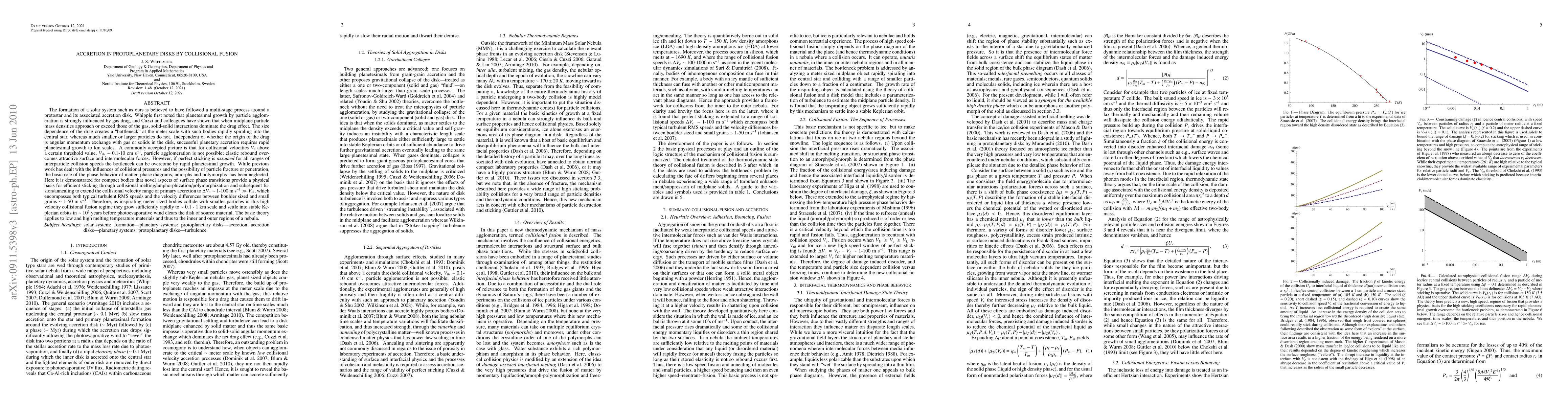 The formation of a solar system is believed to have followed a multi-stage process around a protostar. Whipple first noted that planetesimal growth by particle agglomeration is strongly influenced by gas drag; there is a "bottleneck" at the meter scale with such bodies rapidly spiraling into the central star, whereas much smaller or larger particles do not. Thus, successful planetary accretion requires rapid planetesimal growth to km scale. A commonly accepted picture is that for collisional velocities $V_c$ above a certain threshold collisional velocity, ${V_{th}} \sim$ 0.1-10 cm s$^{-1}$, particle agglomeration is not possible; elastic rebound overcomes attractive surface and intermolecular forces. However, if perfect sticking is assumed for all collisions the bottleneck can be overcome by rapid planetesimal growth. While previous work has dealt explicitly with the influences of collisional pressures and the possibility of particle fracture or penetration, the basic role of the phase behavior of matter--phase diagrams, amorphs and polymorphs--has been neglected. Here it is demonstrated that novel aspects of surface phase transitions provide a physical basis for efficient sticking through collisional melting or amphorph-/polymorphization and fusion to extend the collisional velocity range of primary accretion to $\Delta V_c \sim$ 1-100 m s$^{-1}$, which bound both turbulent RMS speeds and the velocity differences between boulder sized and small grains $\sim$ 1-50 m s$^{-1}$. Thus, as inspiraling meter sized bodies collide with smaller particles in this high velocity collisional fusion regime they grow rapidly to km scales and hence settle into stable Keplerian orbits in $\sim$ 10$^5$ years before photoevaporative wind clears the disk of source material.
