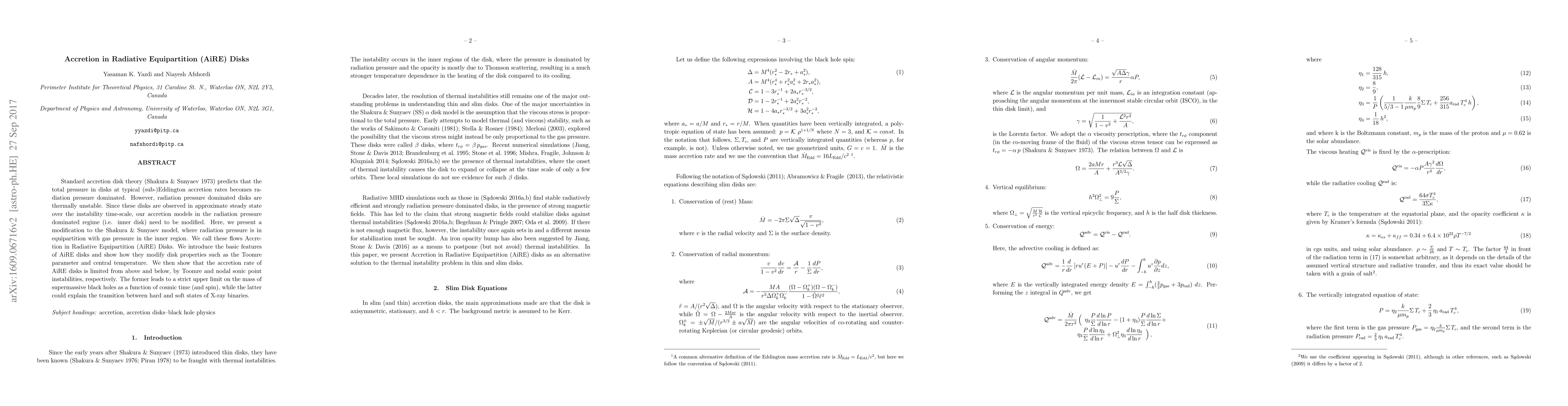 Standard accretion disk theory (Shakura & Sunyaev 1973) predicts that the total pressure in disks at typical (sub-)Eddington accretion rates becomes radiation pressure dominated. However, radiation pressure dominated disks are thermally unstable. Since these disks are observed in approximate steady state over the instability time-scale, our accretion models in the radiation pressure dominated regime (i.e. inner disk) need to be modified. Here, we present a modification to the SS model, where radiation pressure is in equipartition with gas pressure in the inner region. We call these flows Accretion in Radiative Equipartition (AiRE) Disks. We introduce the basic features of AiRE disks and show how they modify disk properties such as the Toomre parameter and central temperature. We then show that the accretion rate of AiRE disks is limited from above and below, by Toomre and nodal sonic point instabilities, respectively. The former leads to a strict upper limit on the mass of supermassive black holes as a function of cosmic time (and spin), while the latter could explain the transition between hard and soft states of X-ray binaries.