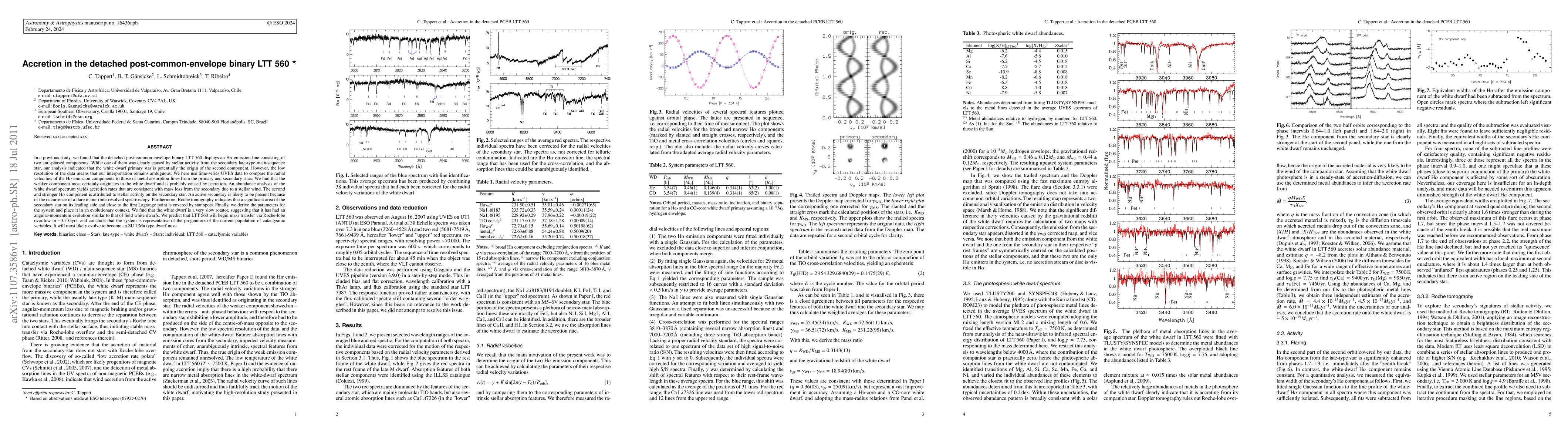 The detached post-common-envelope binary LTT 560 shows accretion onto its white dwarf primary star, driven by mass loss from the secondary star's stellar wind, with predicted future mass transfer and evolution into a cataclysmic variable.