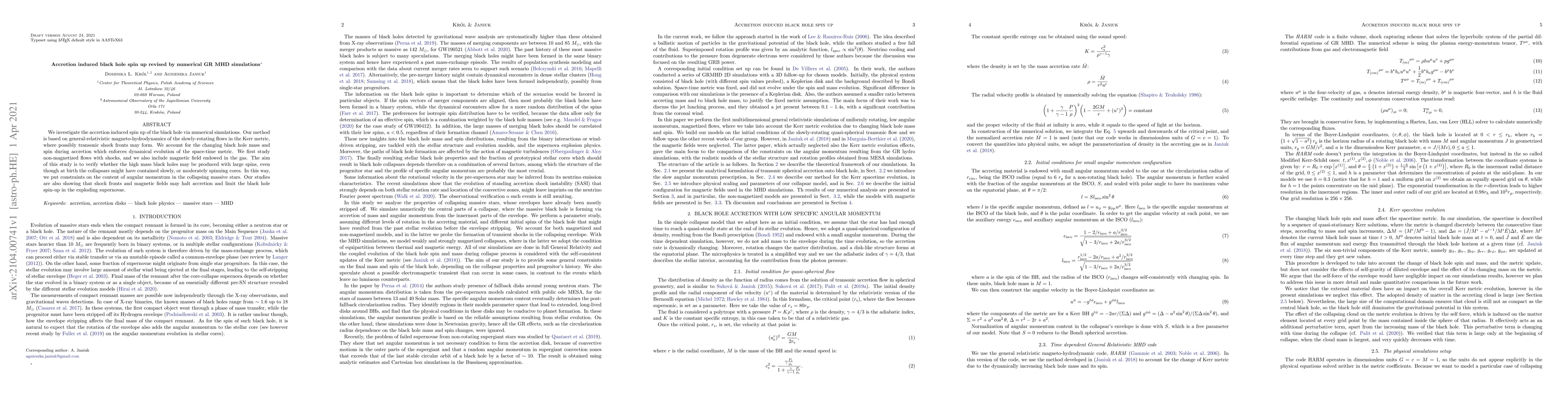 We investigate the accretion induced spin up of the black hole via numerical simulations. Our method is based on general-relativistic magneto-hydrodynamics of the slowly-rotating flows in the Kerr metric, where possibly transonic shock fronts may form. We account for the changing black hole mass and spin during accretion which enforces dynamical evolution of the space-time metric. We first study non-magnetized flows with shocks, and we also include magnetic field endowed in the gas. The aim of this study is to verify whether the high mass black holes may be produced with large spins, even though at birth the collapsars might have contained slowly, or moderately spinning cores. In this way, we put constraints on the content of angular momentum in the collapsing massive stars. Our studies are also showing that shock fronts and magnetic fields may halt accretion and limit the black hole spin-up in the exploding supernovae.
